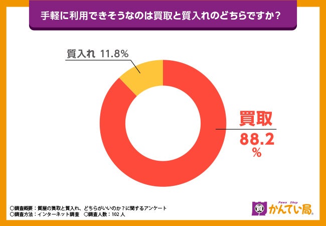 次に「手軽に利用できそうなのは買取と質入れのどちらですか?」と質問したところ、