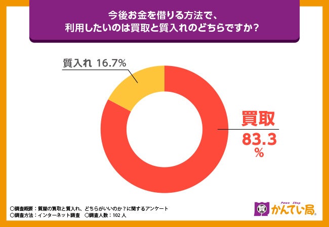 はじめに「あなたがお金を借りる手段として『買取』と『質入れ』どちらが良いですか?」と質問したところ、