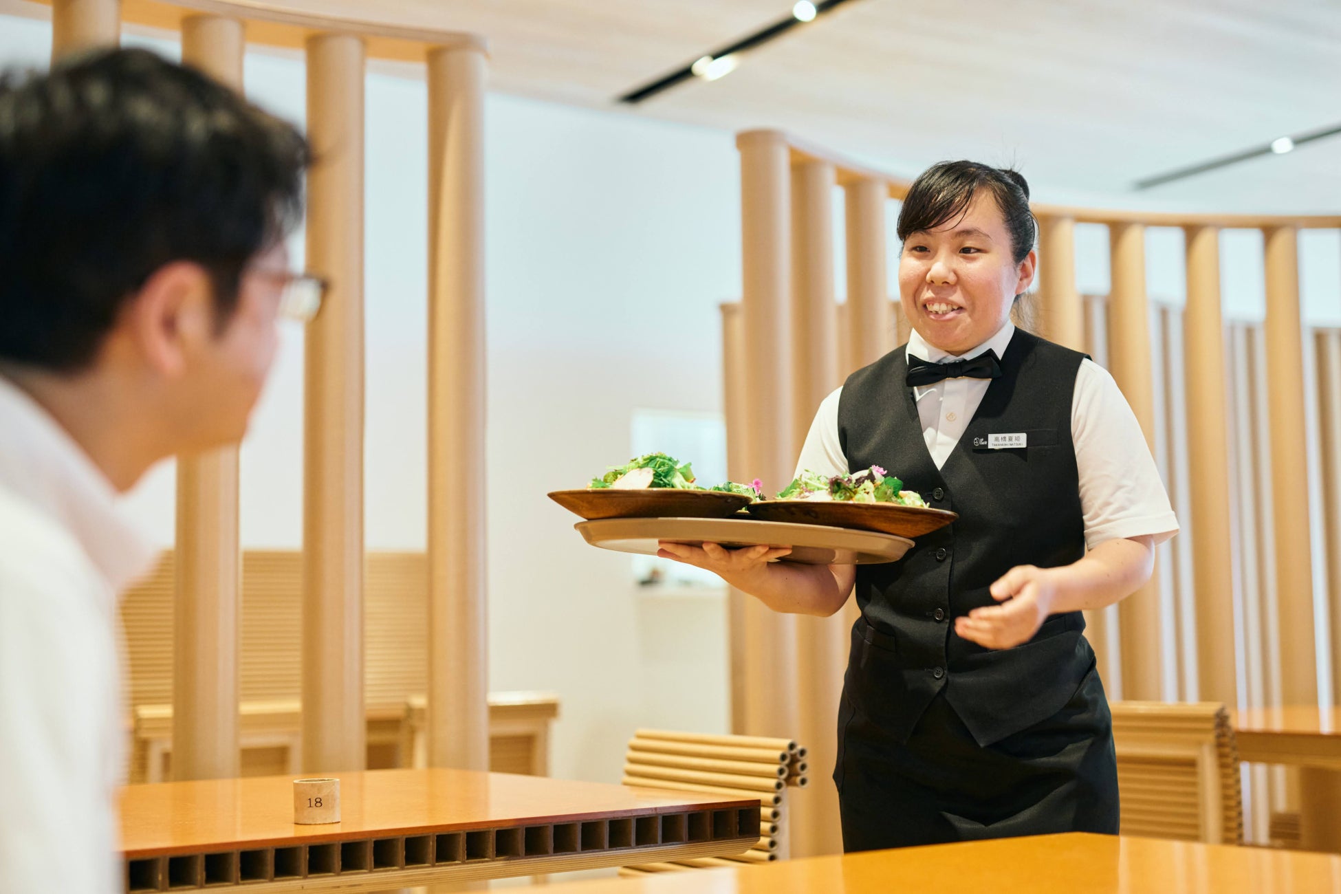 小野さんは社会福祉法人博愛会の支援リーダーとして大分県立美術館café Charité(カフェ・シャリテ)で障がいのある方々の就労支援に取り組んでいます。特に力を入れているのが、「全国障害者技能競技大会」(アビリンピック)への出場サポートです。アビリンピックは、障害のある方が職場で培った技能を披露し、職業能力の向上や雇用促進を目指す大会で、種目の一つに「喫茶サービス種目」があります。小野さんは支援した方が活躍し自信をつけて欲しいという思いで、日々サポートに励んでいます。