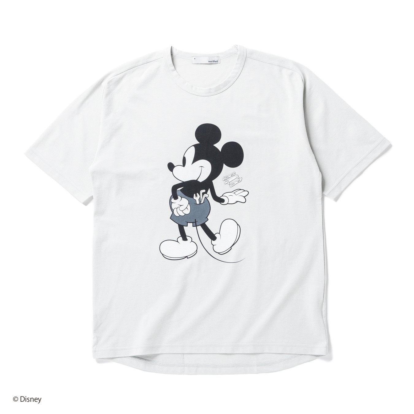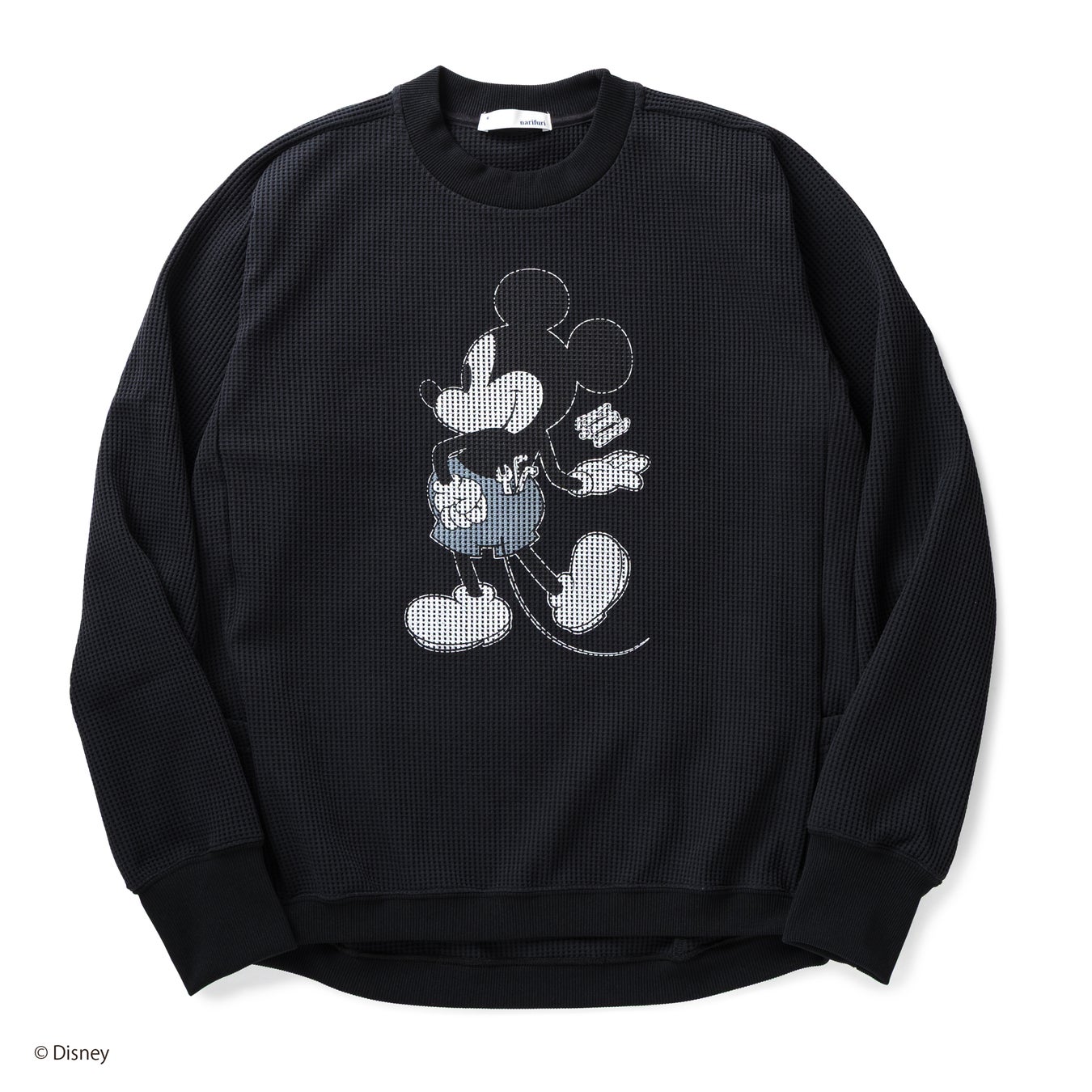 1930年代のクラシックミッキーをデザインソースに、いつものパンツを専用メカニックパンツに着替え、ポケットいっぱいに工具を詰め込み、自転車の整備へ向かうミッキーを描いています。