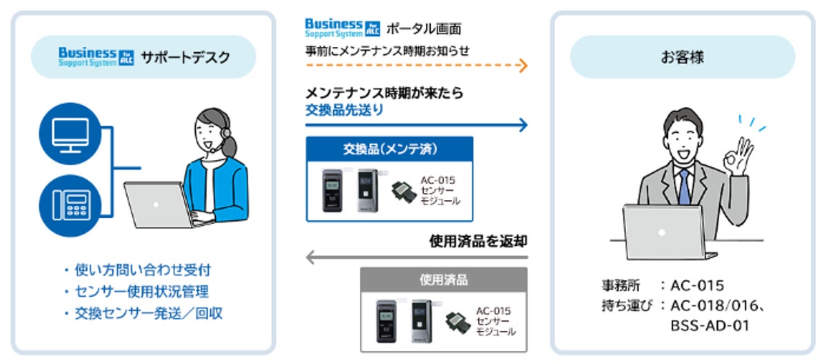 BSSforALCでは、サポートデスクにてお客様の検知器を全て管理しているため