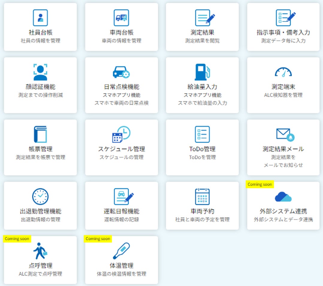 また、アルコール測定~管理だけでなく社員/車両台帳の管理や車両関連の管理、