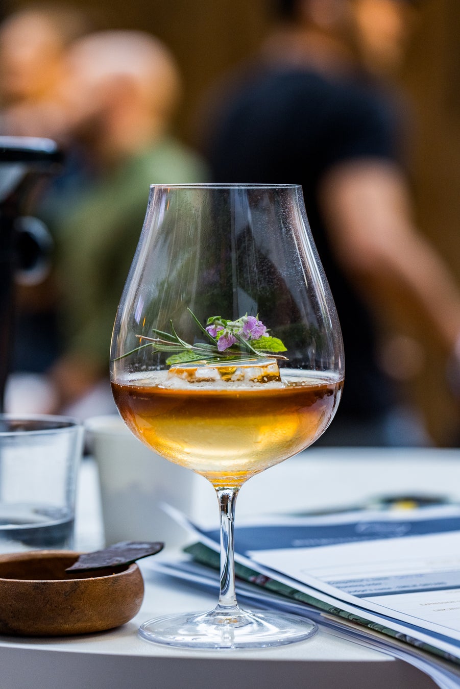 芸術をテーマにしたカクテルに定評のある福澤氏。当日は、音楽を題材にした香り高いスペシャルカクテル『Parfum de Mélodie(パルファン・ド・メロディー)』と、大阪の甘酒を贅沢に使用した福澤氏監修のコラボモクテル『Emerald Serenade(エメラルドセレナーデ)』を提供。感性を刺激するカクテル体験をお楽しみください。