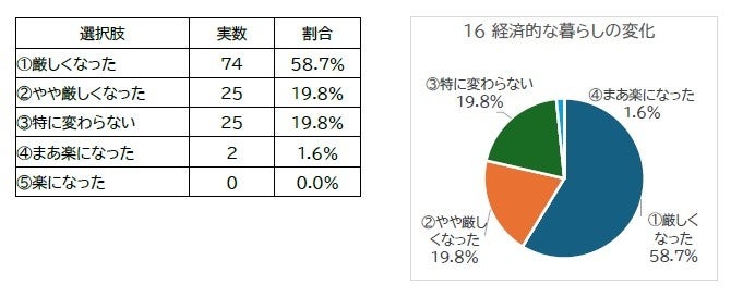 昨年の今頃と比較して「経済的な暮らし向きが厳しくなった」と回答した人が約8割おられます。約2割は「特に変わらない」と回答されていますが、昨年時点ですでに(物価高等により)相当厳しい状況にあった、ということは再確認しておきたいところです。