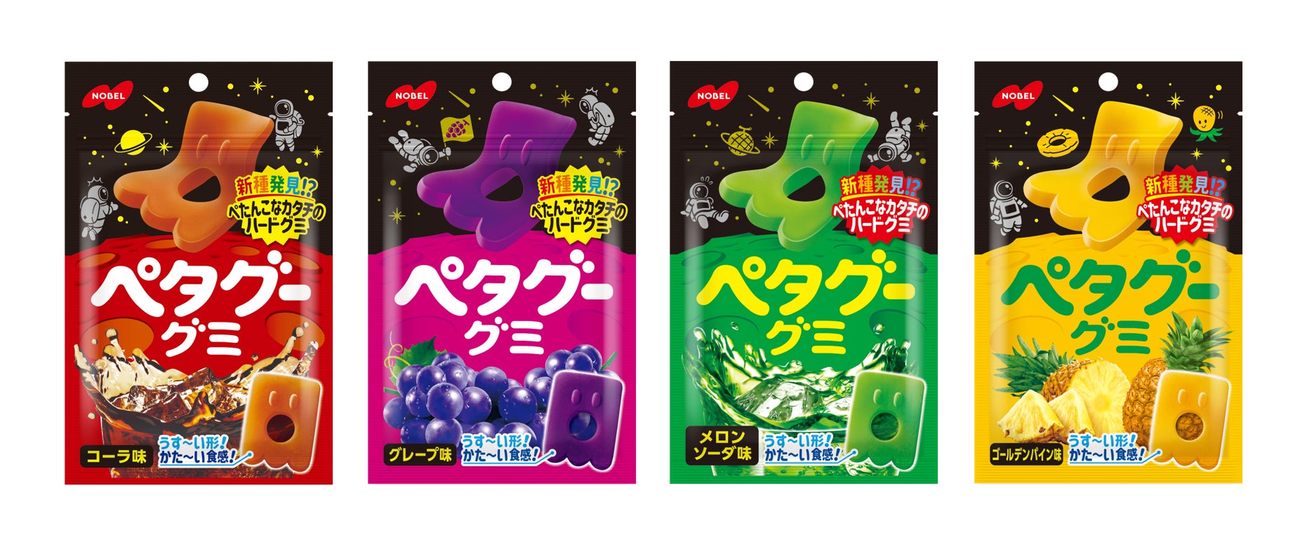 さらに、ノーベル製菓公式X(旧Twitter)またはノーベル製菓公式インスタグラムをフォローいただいた方に、ペタグーグミ1袋(3種のうちお好きな1種)を追加でプレゼントいたします。