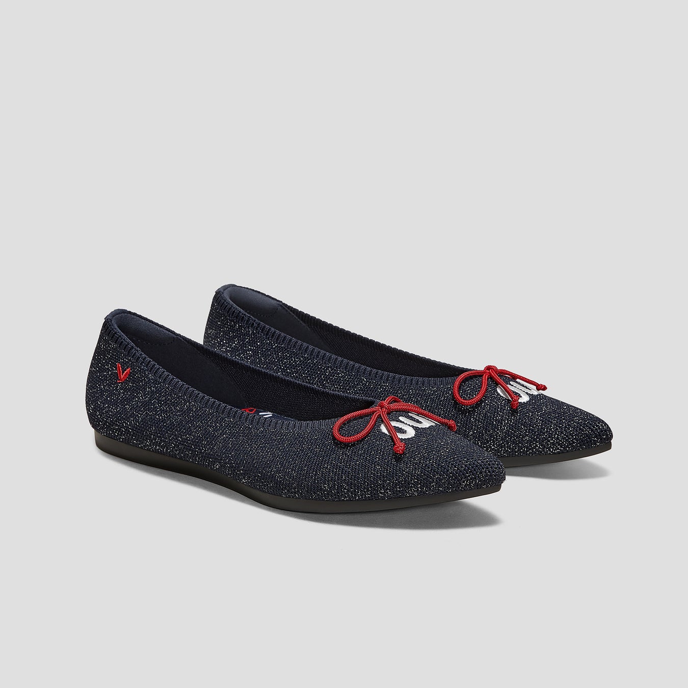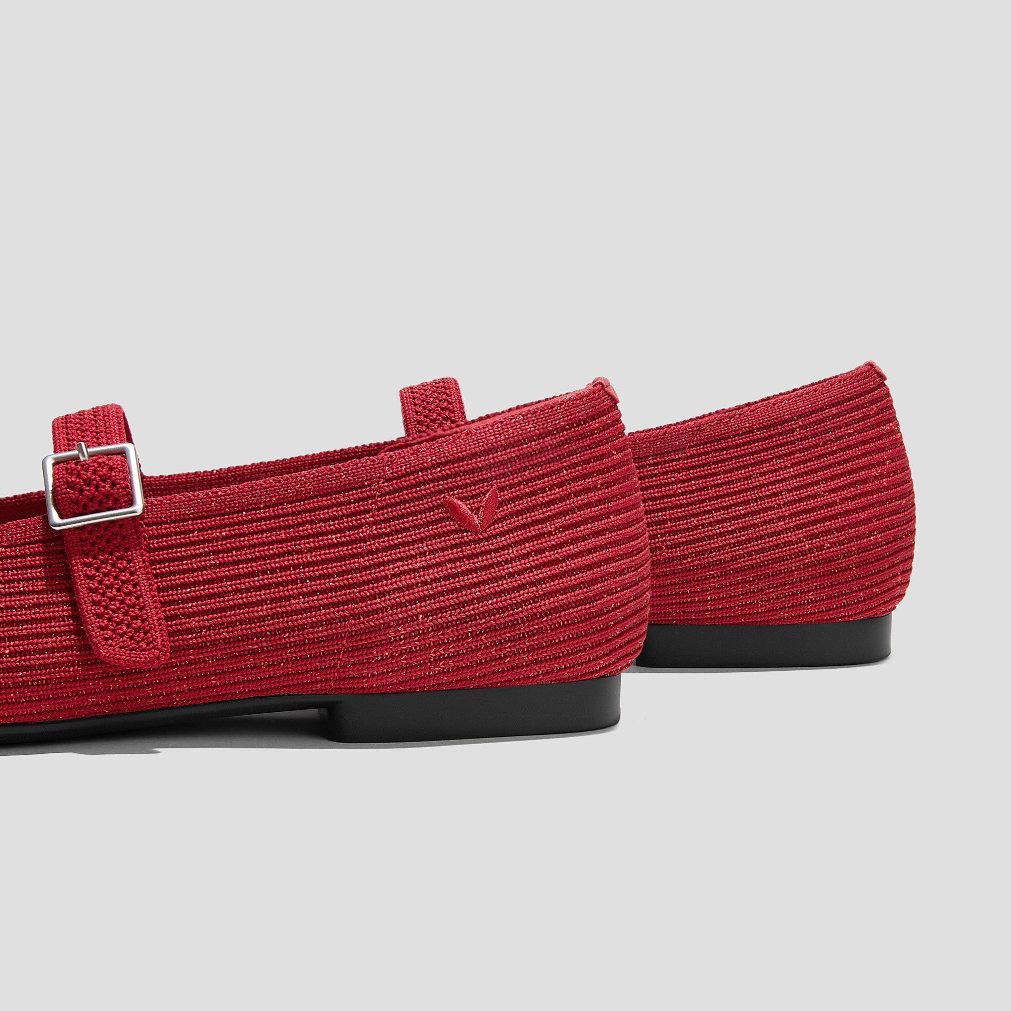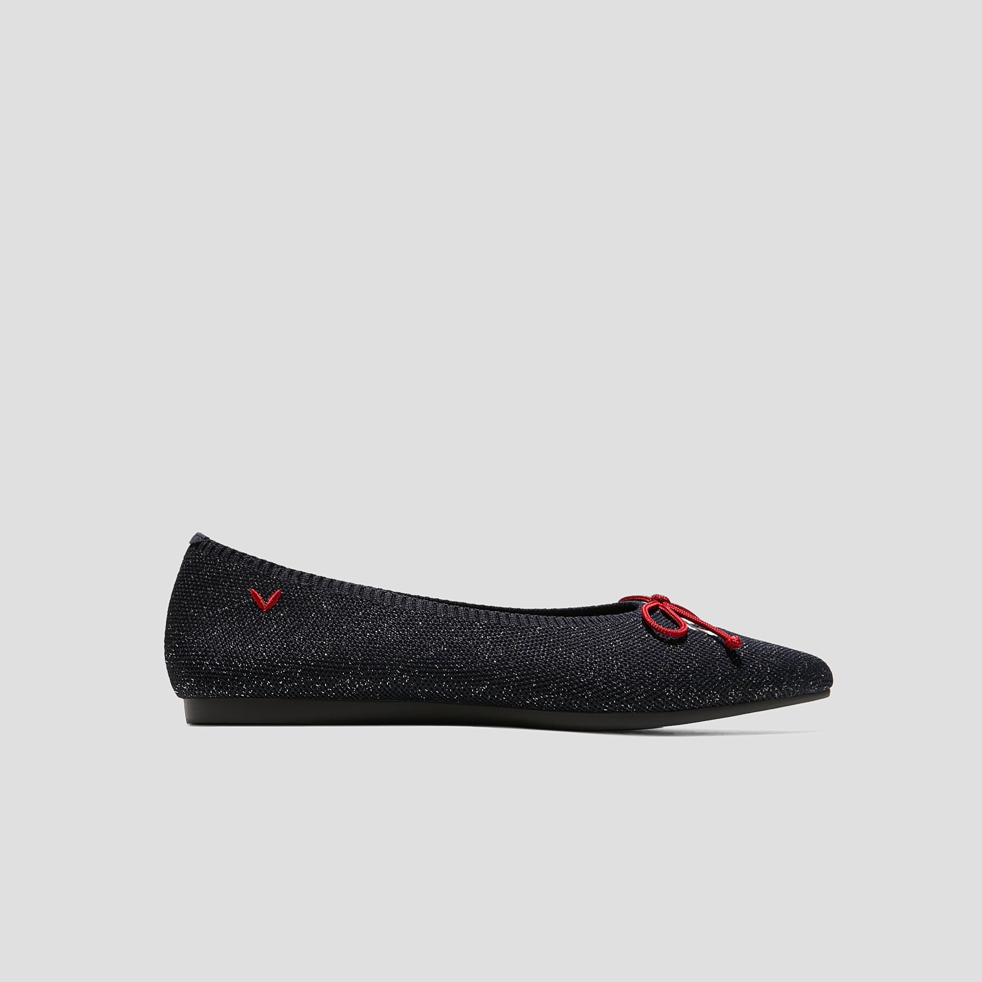 足をすっきり見せてくれるシルエットで大人気なポインテッドトゥデザインの「Aria5°」。一般的なポインテッドトゥデザインよりもつま先部分が5°広くなり、つま先のゆとりを確保します。歩くたびに輝くラメ入りニット素材と赤いリボンが可憐さを表現する一足です。ヨガマット素材の衝撃吸収ミッドソールと、かかと部分の水ぶくれ防止パッド付きで、どんな足の形の方でも快適に過ごせます。