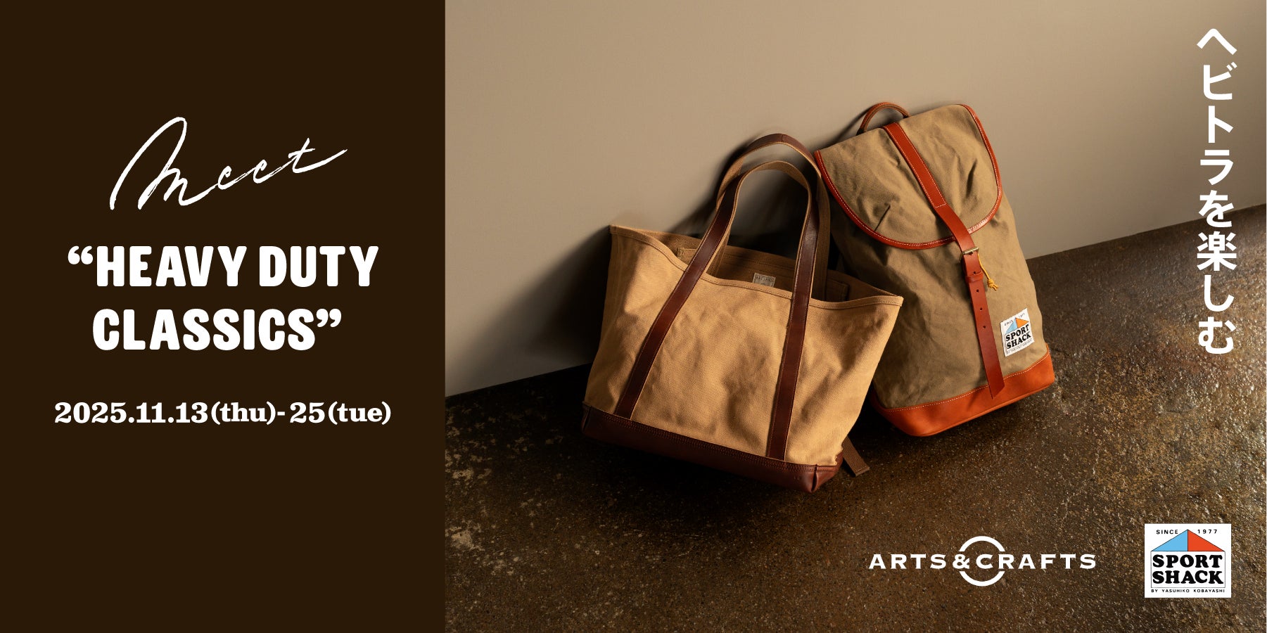 本イベントでは、「SPORT SHACK」を手掛けた小林泰彦と、「ARTS&CRAFTS」のデザイナー藤本孝夫の対談をきっかけに生まれた"ヘビーデューティー"の名に相応しいデイパックを販売いたします。