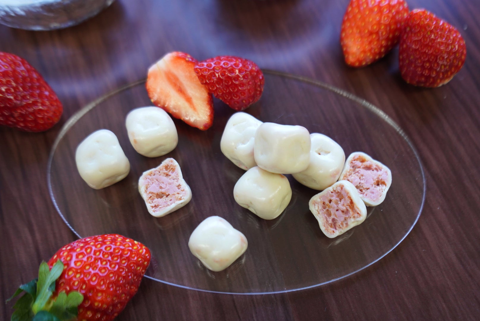 いちごの味わいを引き立てるため、コーティングにはホワイトチョコを厳選しました。
