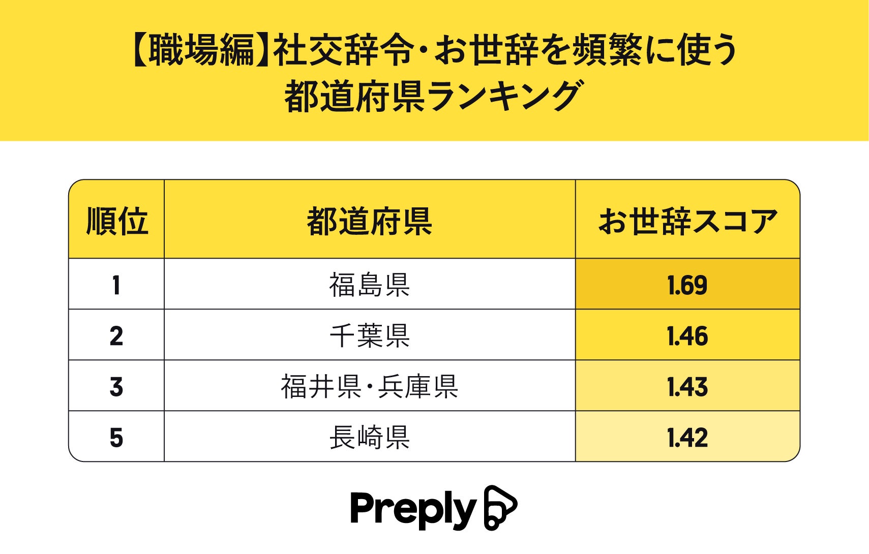 【(職場編)お世辞・社交辞令を頻繁に使う都道府県ランキング】