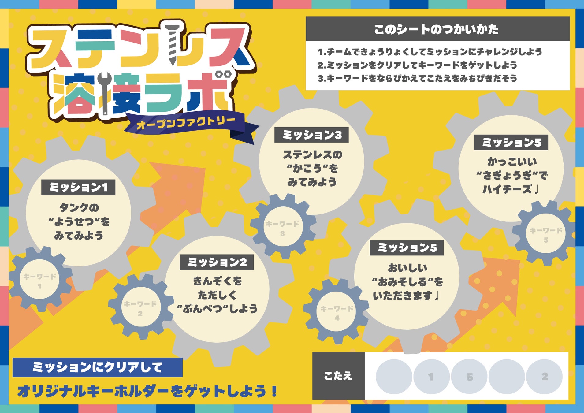 ステンレス溶接ラボではモノづくりの魅力を子ども世代に発信していくことを目的としており、工場内を楽しみながらツアーができる謎解きミッションを実施しました。