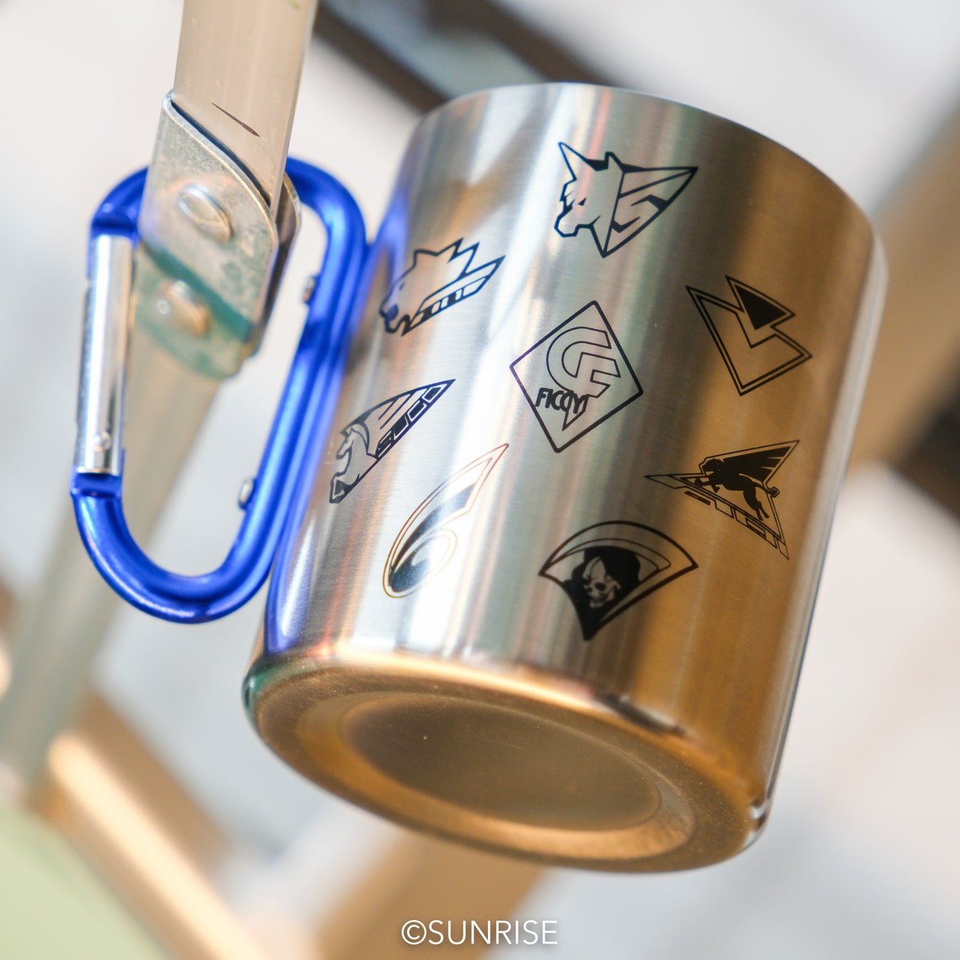 (1)第13回大会「リザルトボード ステンレスカップ」:チームエンブレムとリザルトボードのレーザー刻印入りで、持ち手はカラビナ式なのでアウトドア用にも最適。