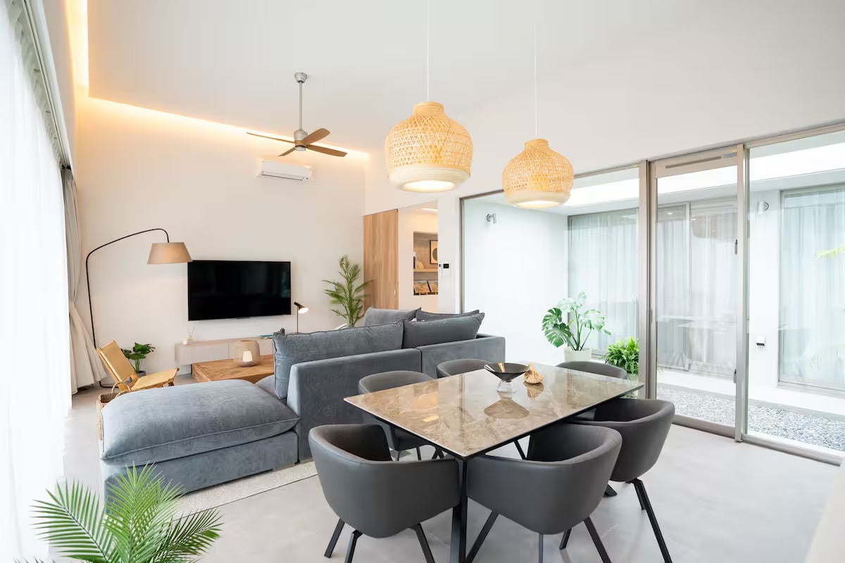 沖縄県南城市に位置する「玉城テラス」は那覇空港から車で約30分程の一棟貸しの宿です。建物は平屋建てで約100㎡、敷地は約500㎡の広さです。最大6名まで宿泊できます。