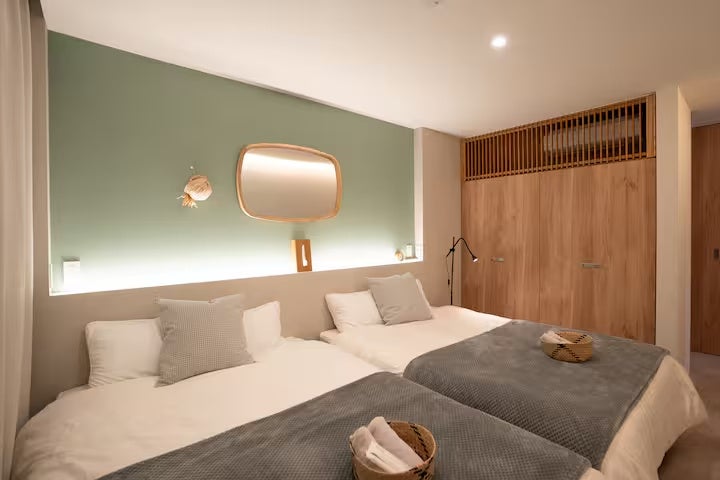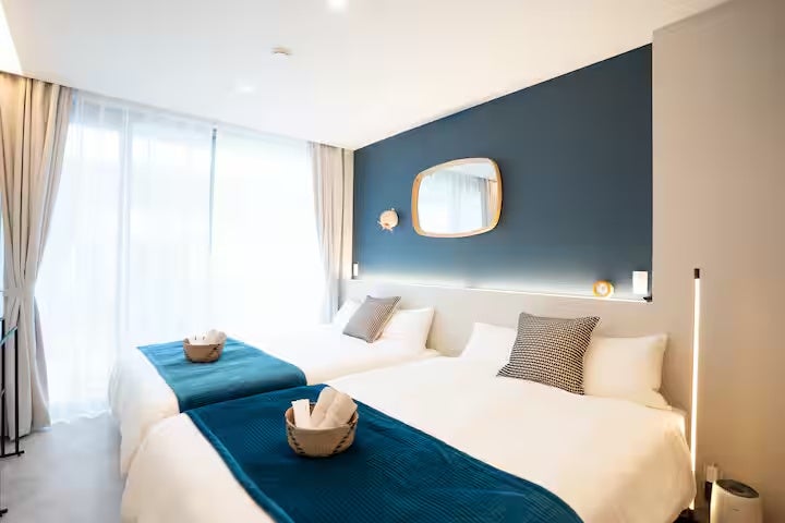ダブルベッド2台・アイロン・エアコン・ハンガー・衣類収納スペース・遮光カーテン