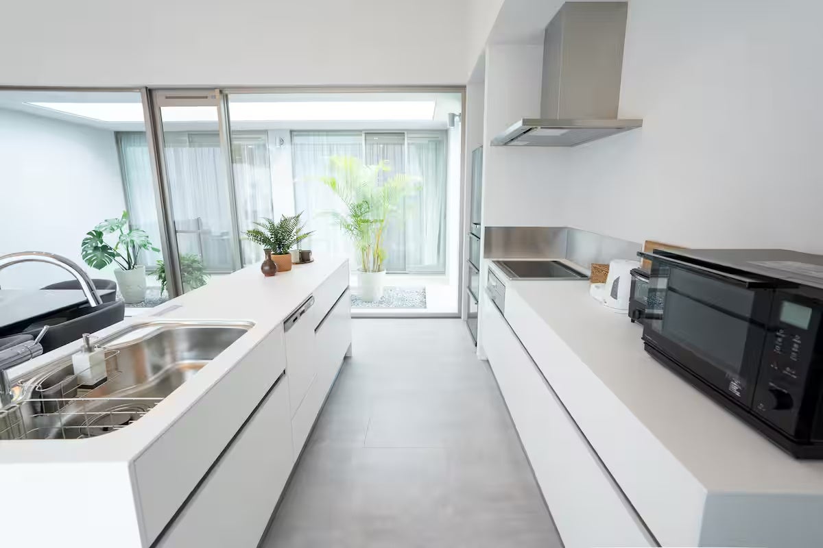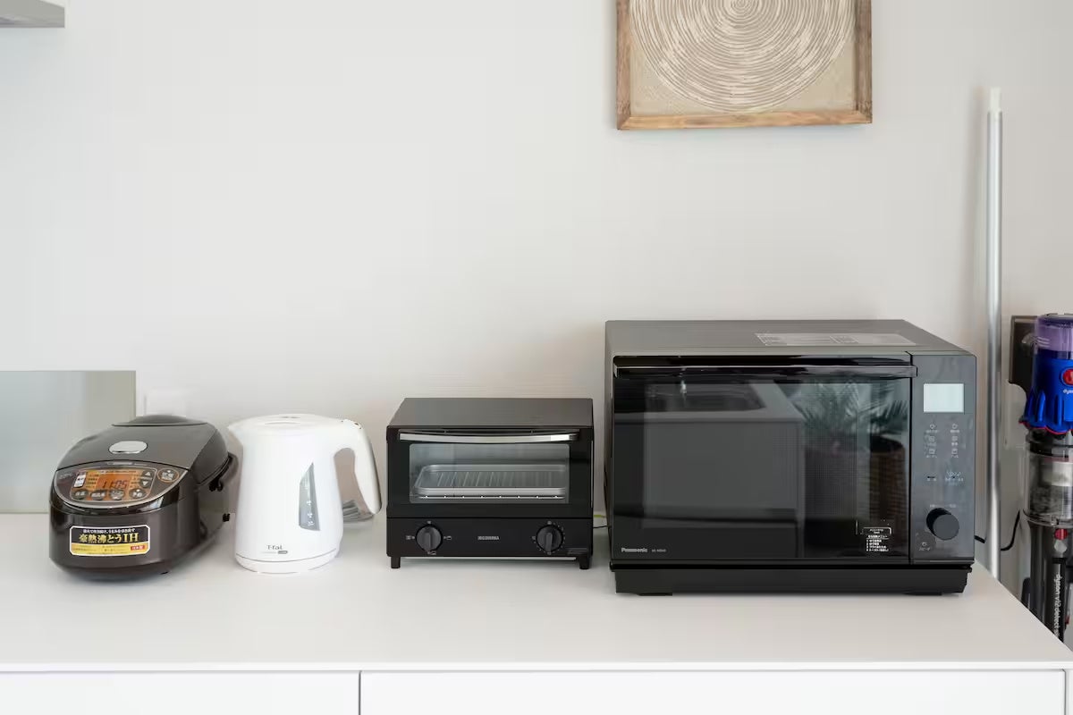 オーブン・コンロ・コーヒーメーカー・トースター・冷凍庫・冷蔵庫・基本的な調理器具・炊飯器・電子レンジ・ワイングラス・電気ポット・食器&カトラリー・食器洗い機