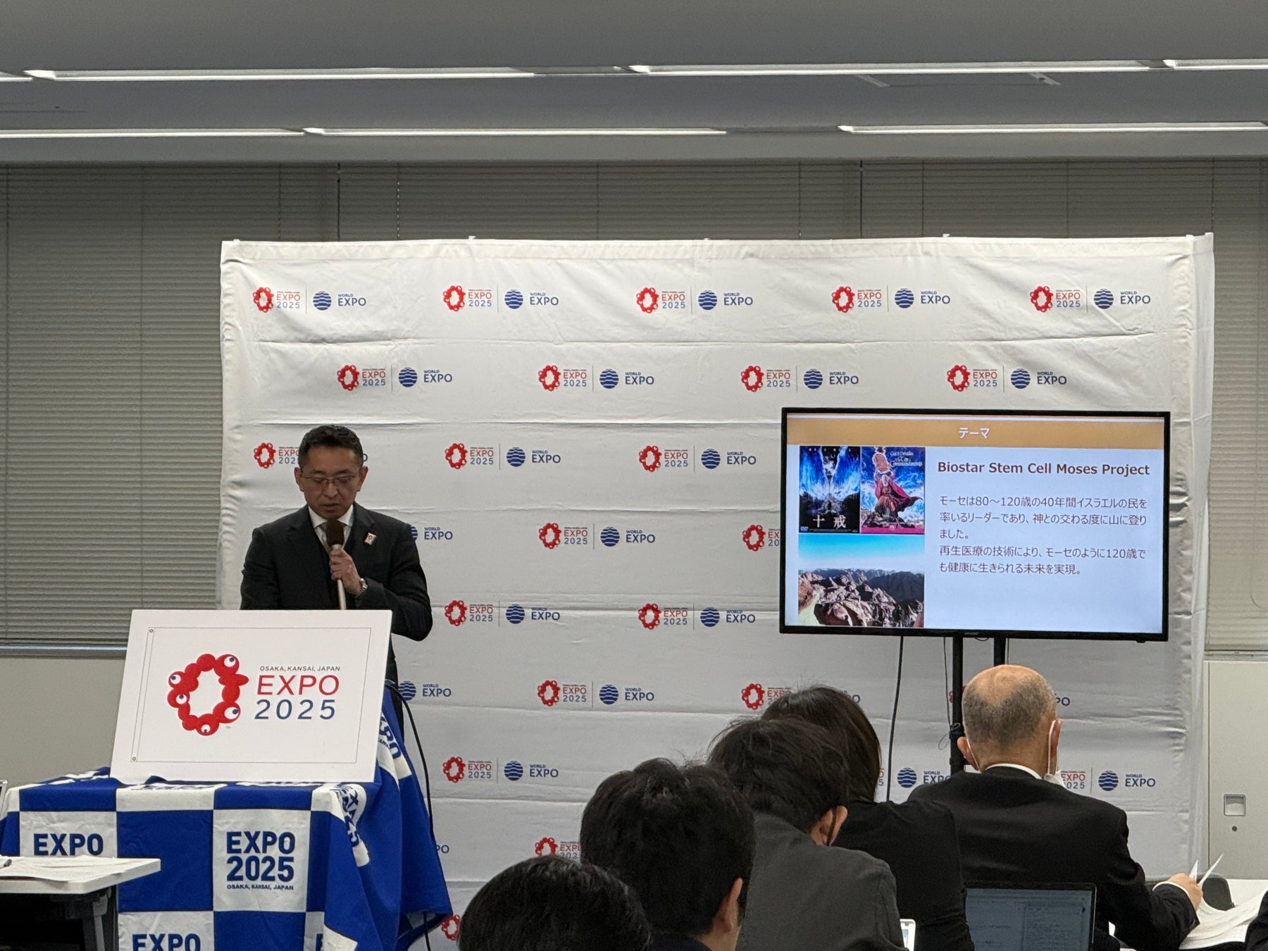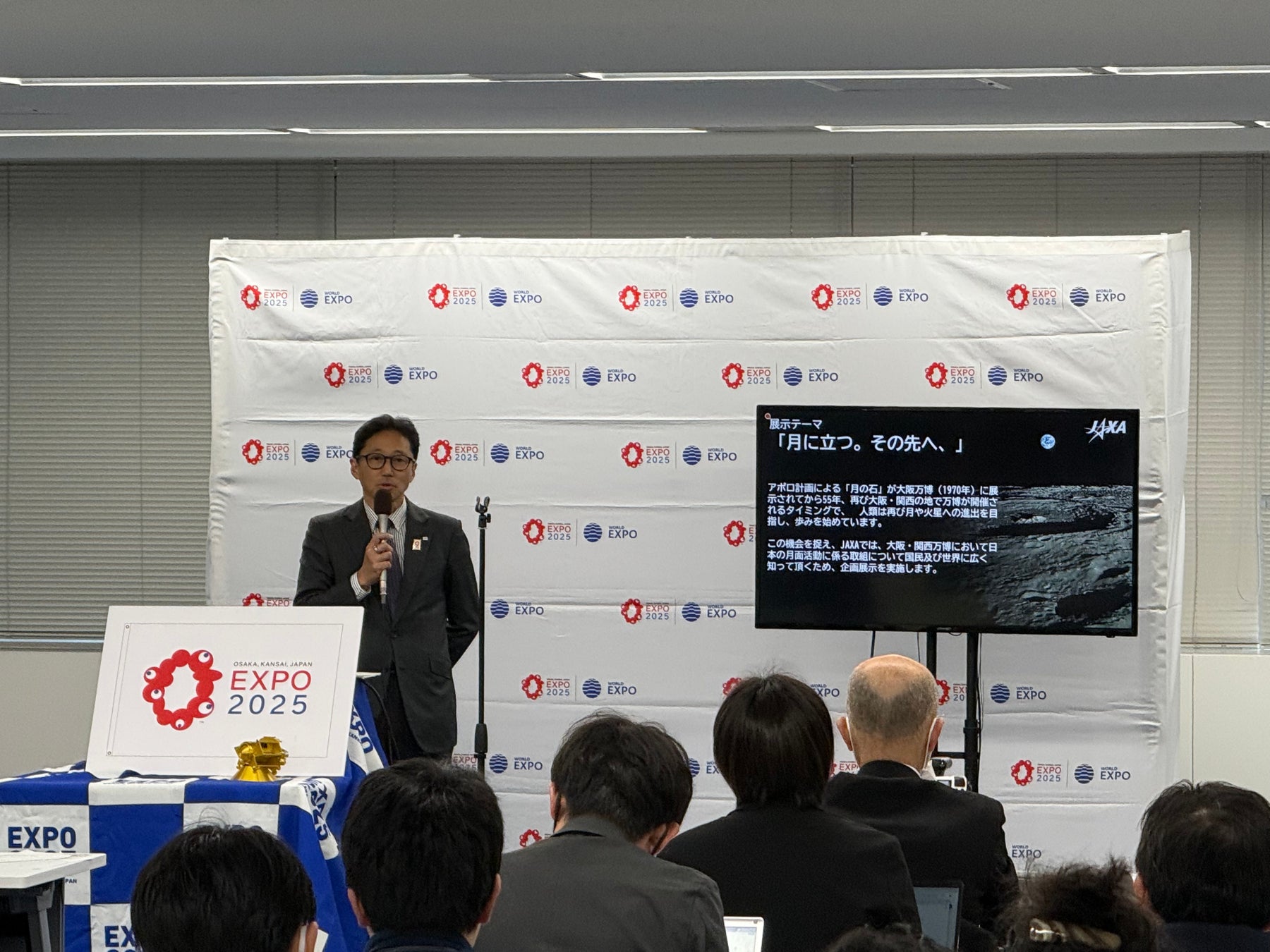 「月に立つ。その先へ、」をテーマに、小型月着陸実証機「SLIM」や月極域探査機「LUPEX」、月面探査に活用される有人与圧ローバーの模型展示を行うJAXAのほか、独自に開発した水系反応液を使用した「グリーン水素生成発電技術」と「CO2常温吸着・脱着技術」の2つの革新的な技術が社会実装されることで実現する、従来とは異なる未来の脱炭素社会の姿を紹介するフソウ新未来テック、「人間本来の暮らし方の探求~最先端のデジタル技術と生きる社会とはなにか~」をテーマに展示を行うメタバース推進協議会、最先端医療の幹細胞治療に取り組むJASC、NTアソシエイツ・TOPPANホールディングス・島津製作所によるコンソーシアムでメディアアートの展示を行うZero Gravity Art。それぞれの代表者が発表会に登壇し、展示内容や万博に参加する意気込みを語りました。