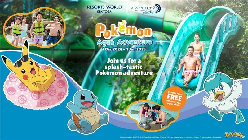 アドベンチャー・コーブ・ウォーターパークへの通常入場券で「ポケモン・アクア・アドベンチャー」をお楽しみいただけます。チケット料金は大人34シンガポールドル、子供28シンガポールドルです。より特別なお祝いには、ファミリー・ファン・コンボを80シンガポールドルでお買い求めいただけます。大人券2枚分の料金で子供券1枚が無料で付いてくる他、15シンガポールドル分のお買い物券とショッピング券ももらえるお得なセットです。詳細は https://www.rwsentosa.com/ACWPOKEMON24 をご覧ください。