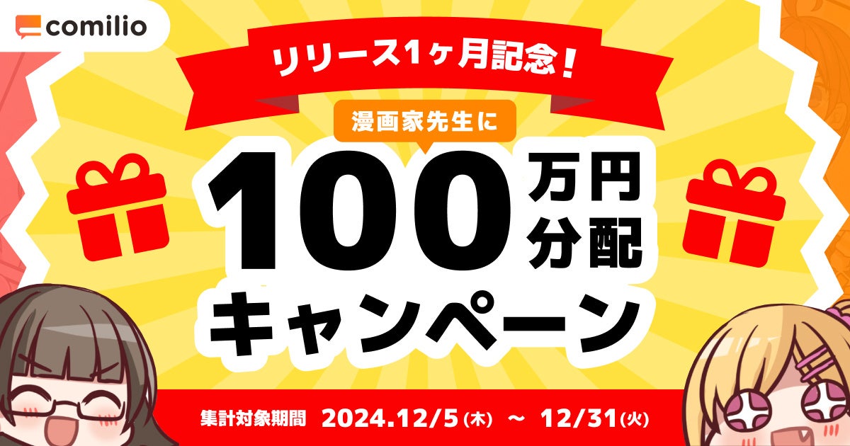 【リリース1か月記念!】漫画投稿プラットフォーム「comilio」100万円分配布キャンペーンを実施