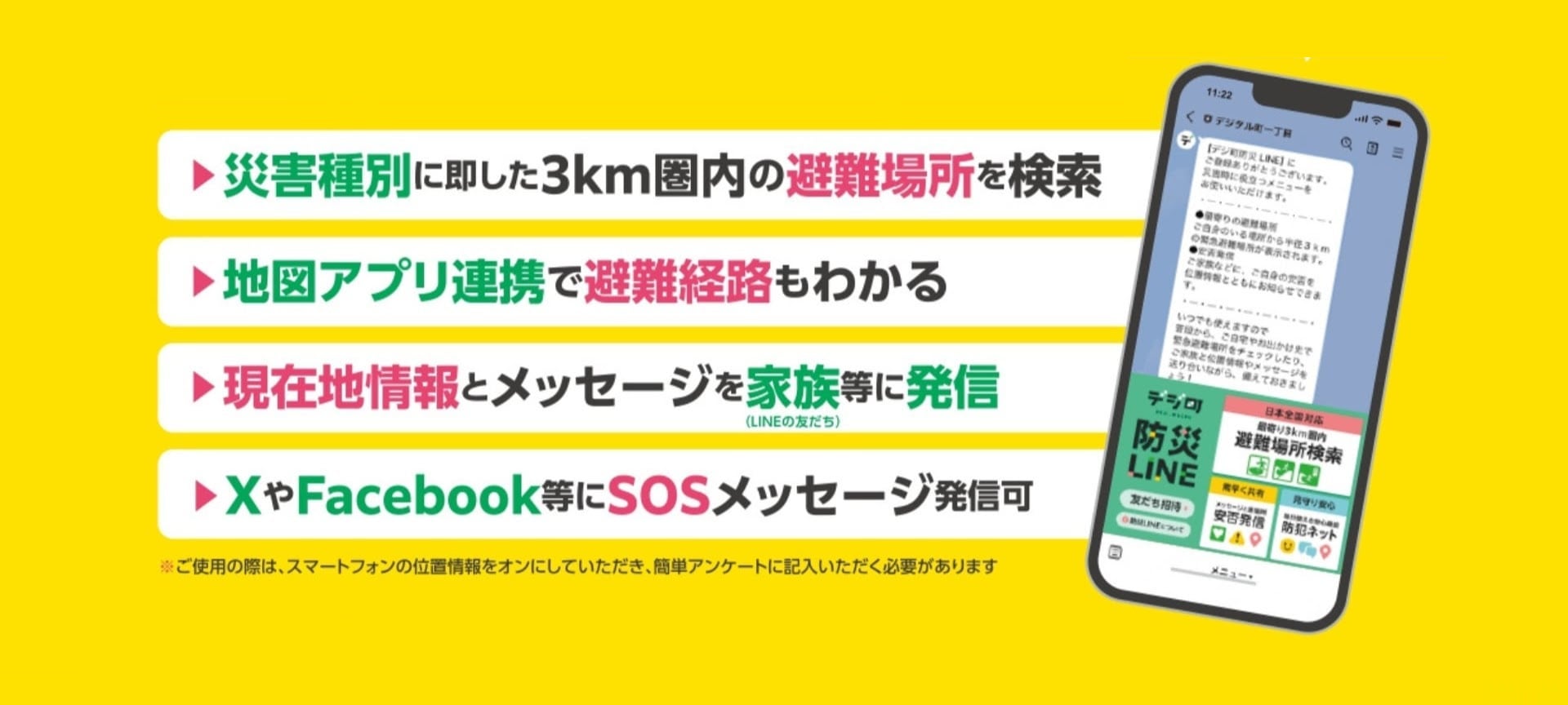 最寄りの避難場所がLINEですぐわかる「デジ町防災LINE」全国版リニューアルリリースのお知らせ