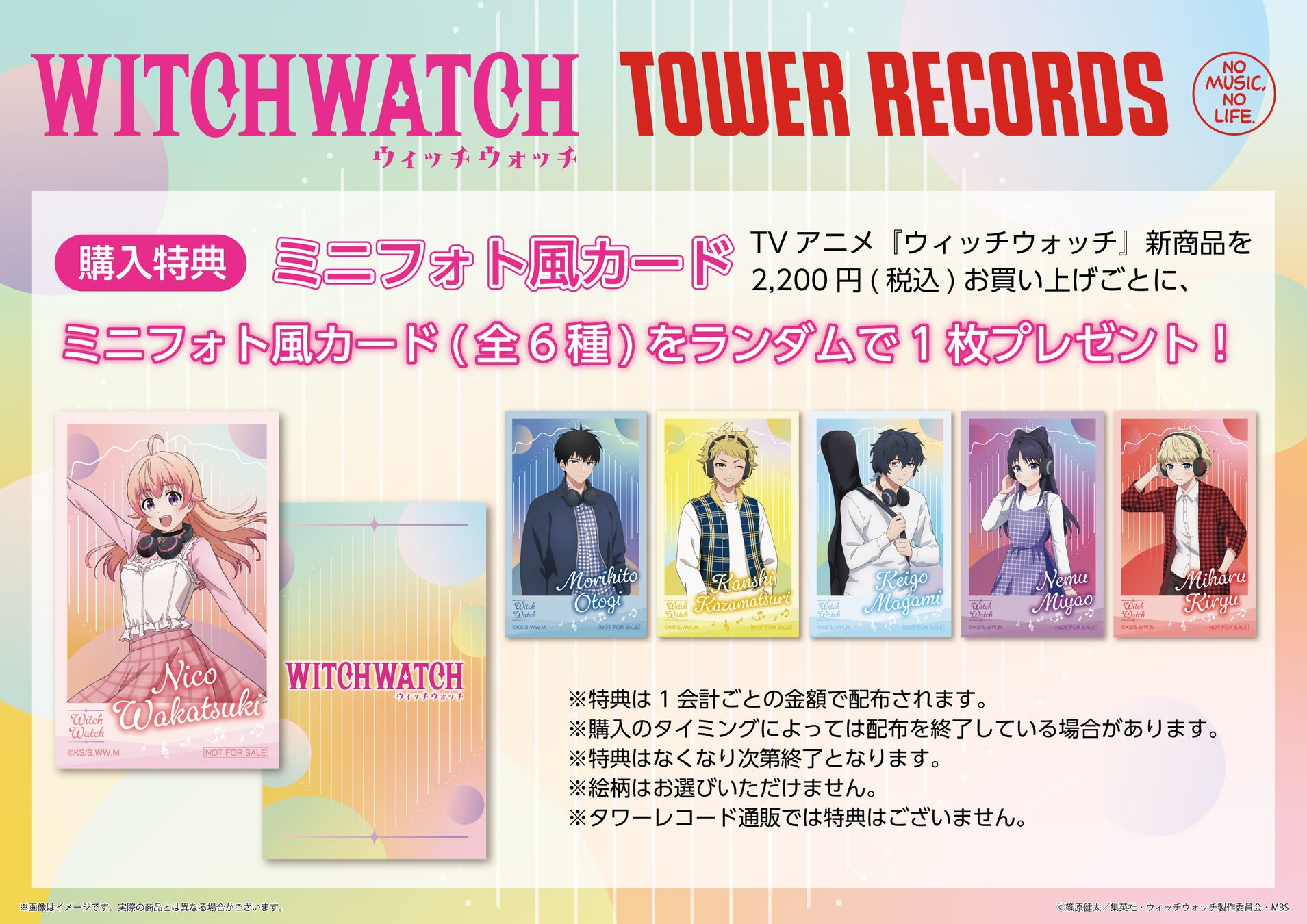 TVアニメ『ウィッチウォッチ』 POP UP SHOP in TOWER RECORDSにて新商品を2,200円(税込)お買い上げごとに、先着で特典ミニフォト風カード(全6種)をランダムで1枚プレゼント!