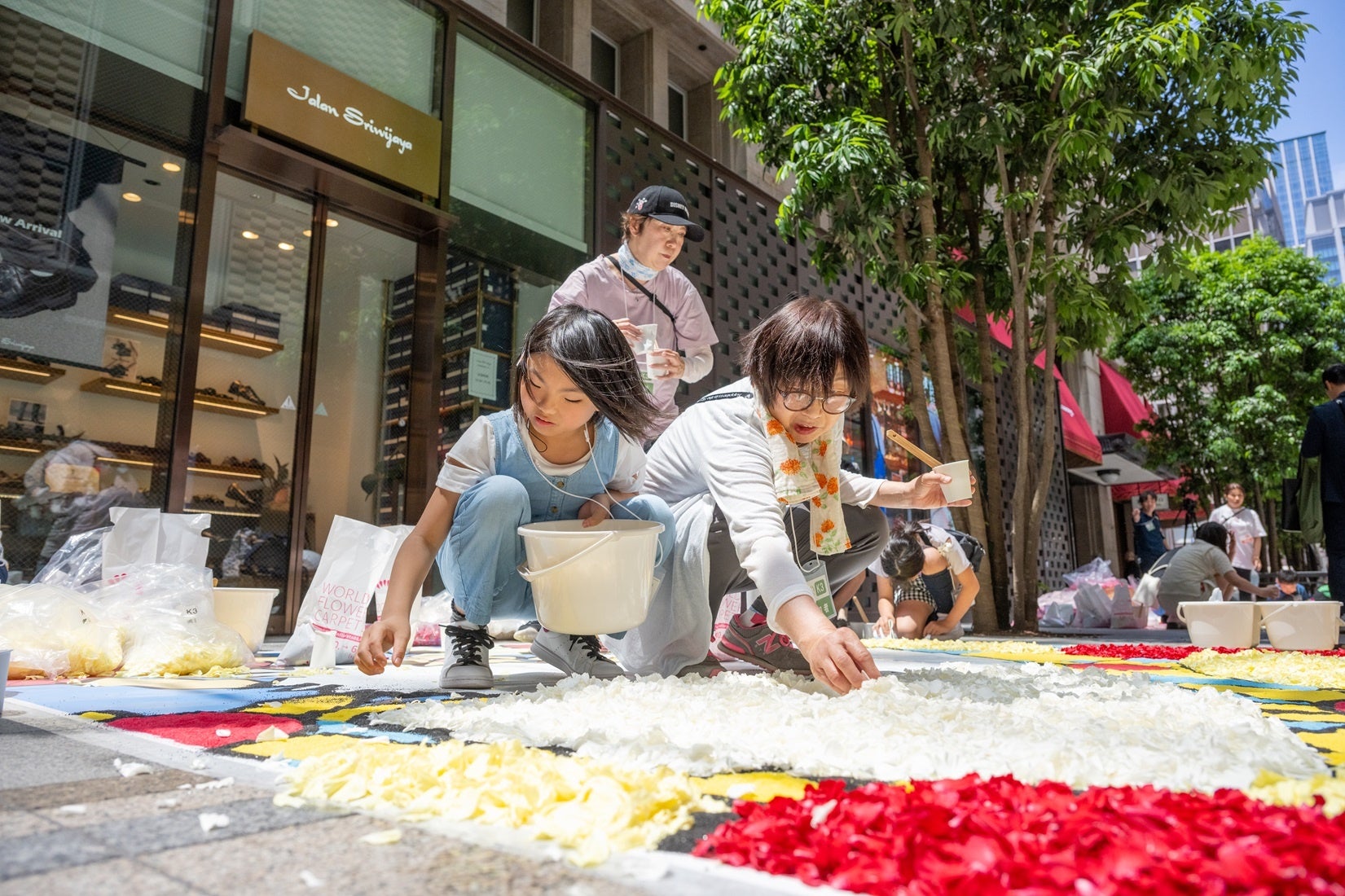 大阪市役所からなんば広場まで、御堂筋がフラワーカーペットアートのギャラリーに!約10万本のカーネーションでつくられる18枚の花絵。つくるのは“あなた”です!