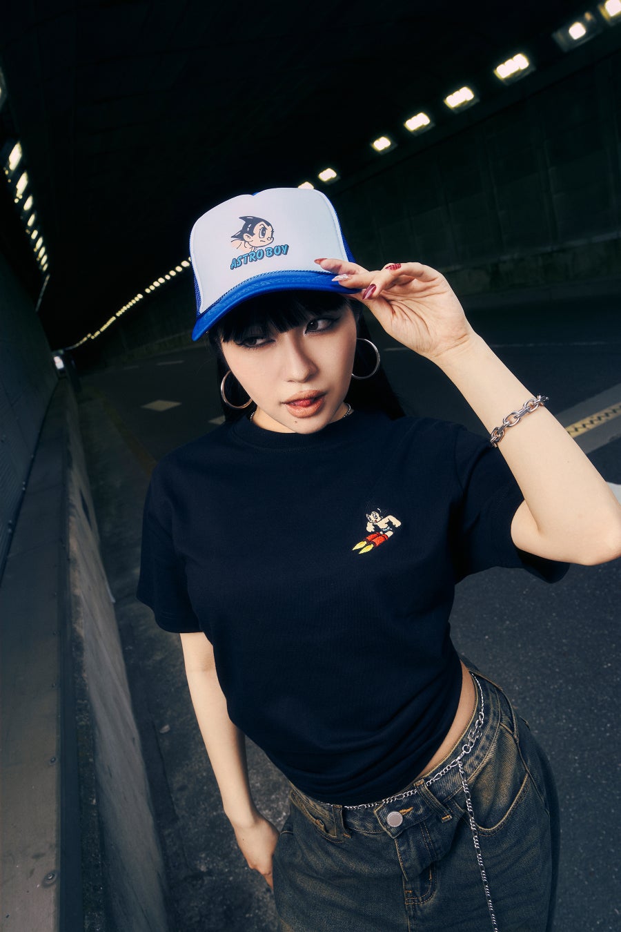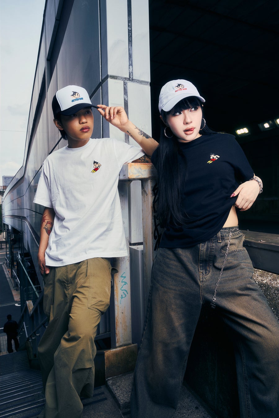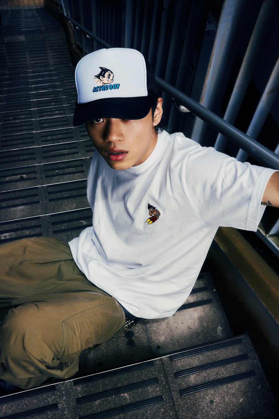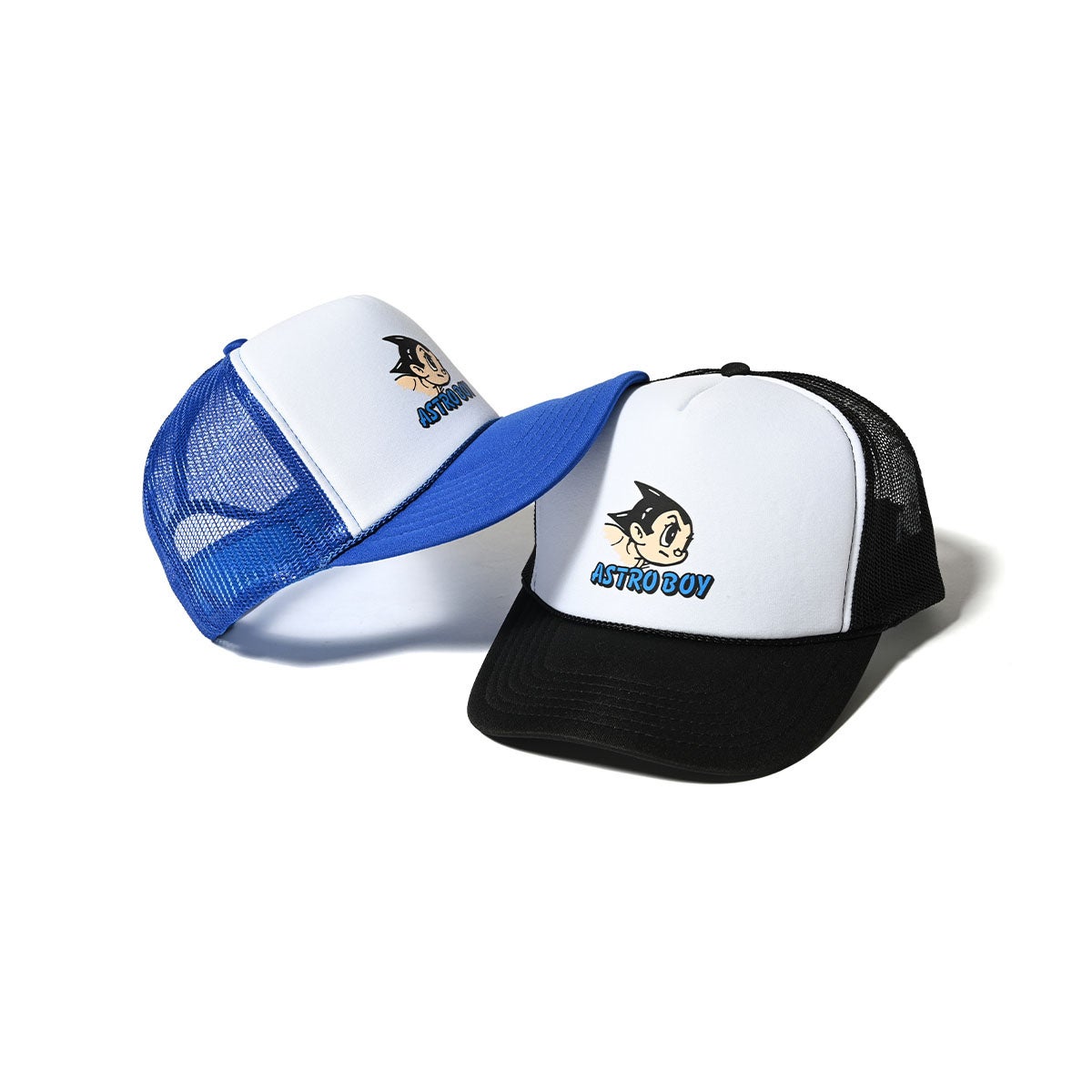 時代を超えて愛される日本のヒーロー「鉄腕アトム」とセレクトショップ「HOMEGAME」によるメッシュキャップ。フロントパネルにASTRO BOYの文字とアトムの顔を大胆にプリントで表現。