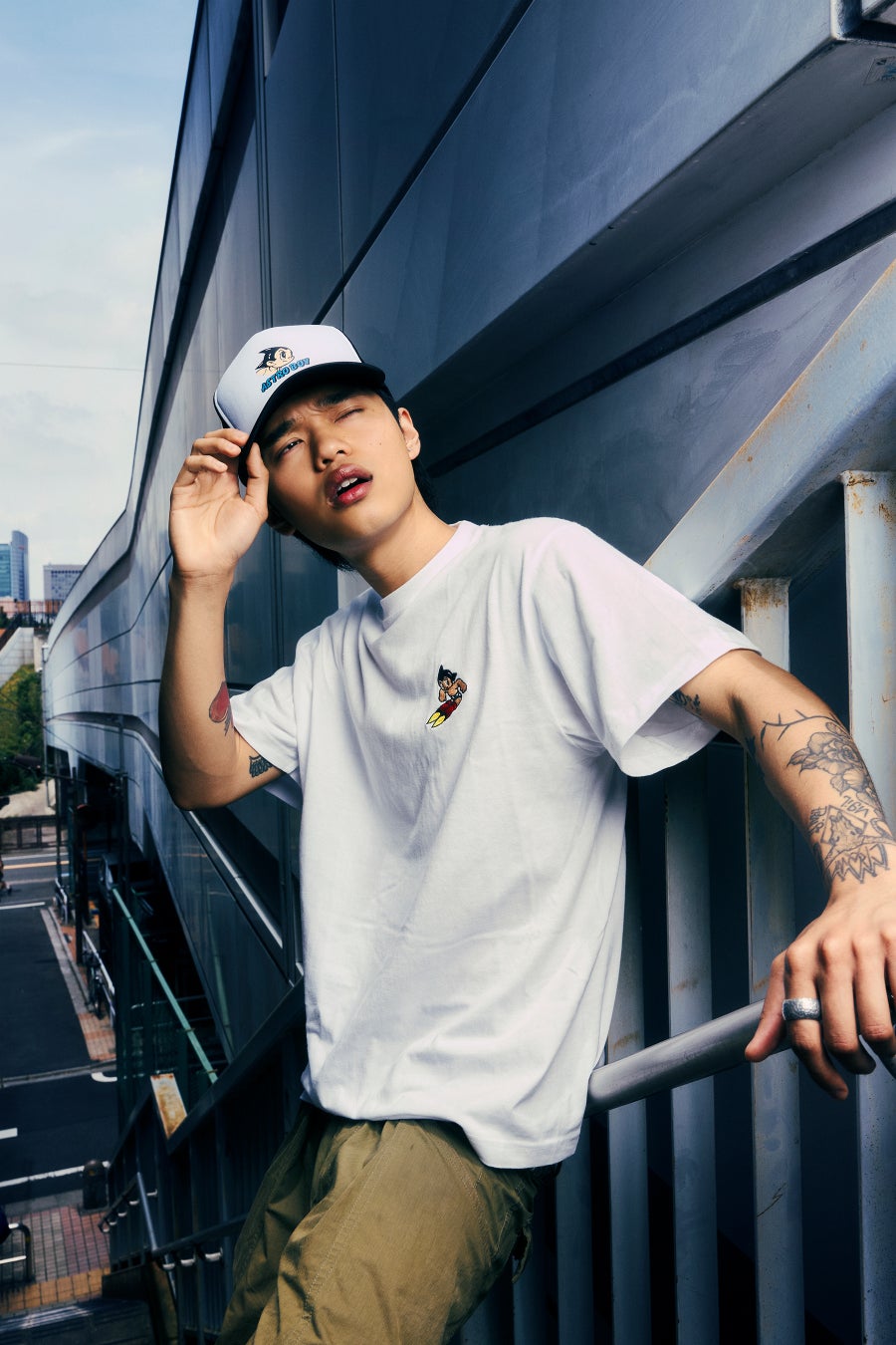 時代を超えて愛される日本のヒーロー「鉄腕アトム」とセレクトショップ「HOMEGAME」によるTシャツ。フロントの胸元に足からジェットの炎を吹き出して空を飛ぶアトムの姿をさりげなく刺繍で表現。ファンはもちろん、日常のスタイリングにも取り入れやすく、ファッションアイテムとしても優れた1枚。