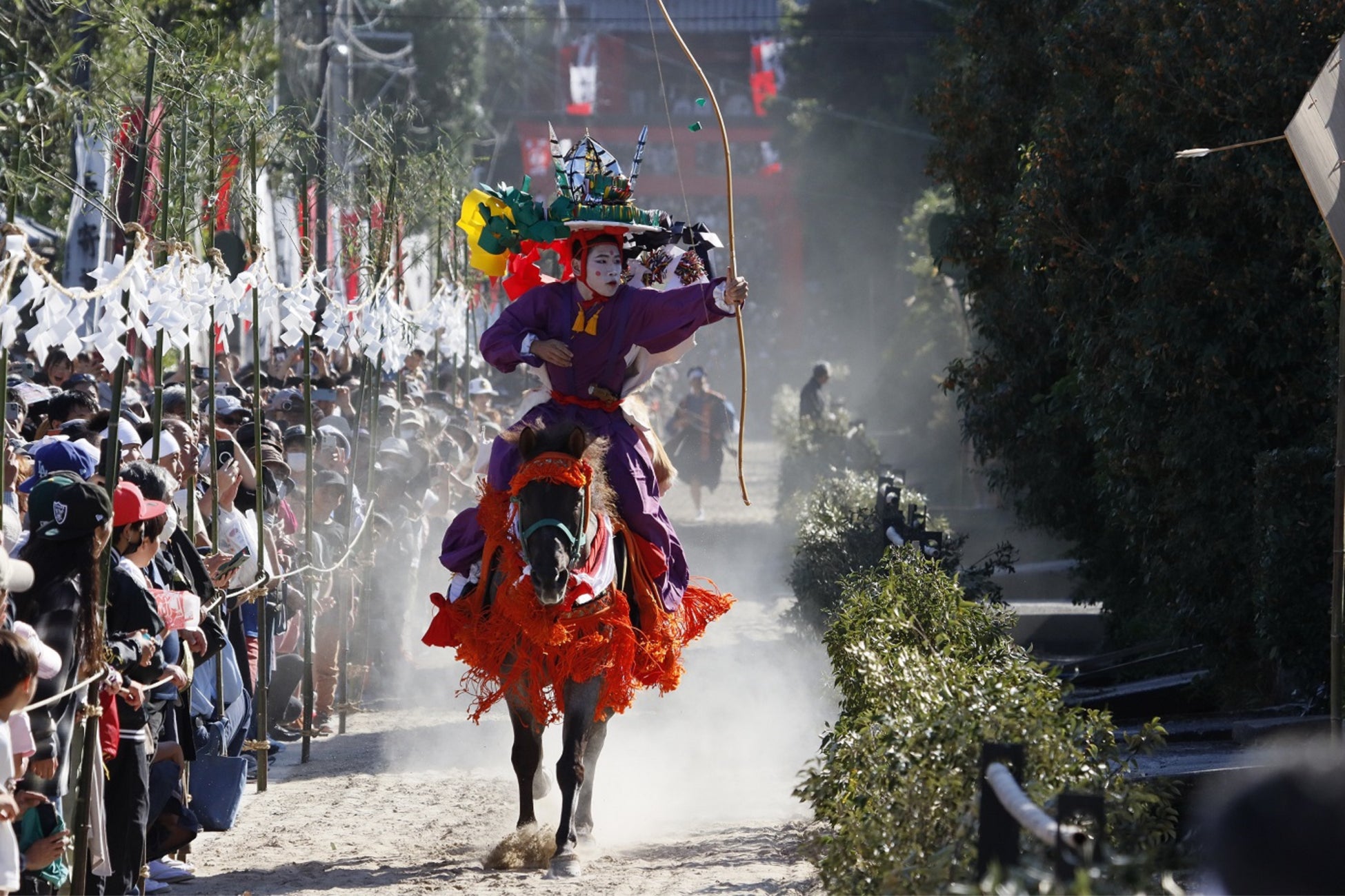 肝付町の中央部には900m 級の山々が連なっており、北側を高山地区、南側を内之浦地区という2つの町並みから形成されています。里山が広がる高山地区では畜産と畑作が盛んで、毎年10月に行われる流鏑馬行事は、全国でも珍しく14歳の少年が射手を務める、約900年も続く伝統的な行事です。