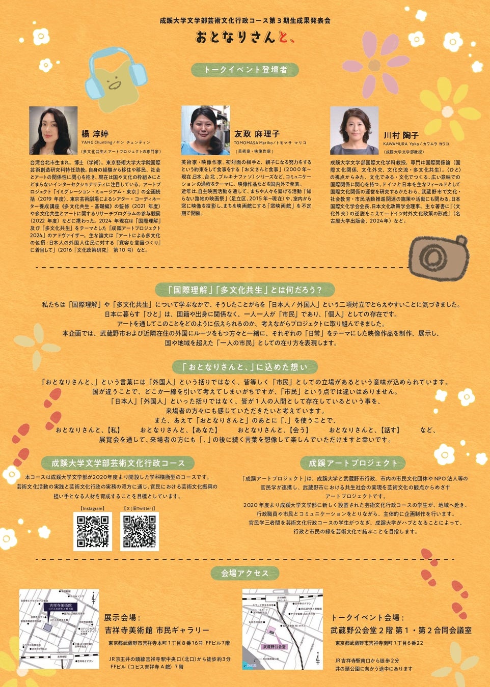 成蹊大学文学部芸術文化行政コース 成果発表会「おとなりさんと、」開催