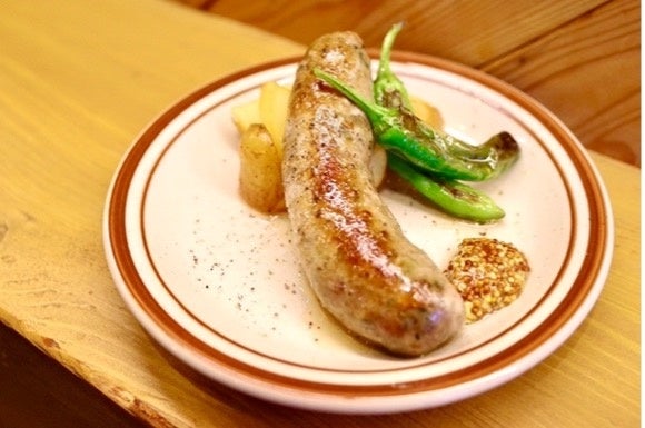 フードメニューのメインは自家製ソーセージ。肉汁溢れるジューシーな口当たりはビールと相性抜群です。ソーセージ単体でも、ホットドッグとして食べていただいても美味しくいただけます。ビールと一緒にテイクアウトも可能です。ソーセージは今後も個性的なバリエーションを増やしていきます。ソーセージ以外のメニューも多数取り揃えます。15種類のビールとのペアリングも楽しんでいただけます。