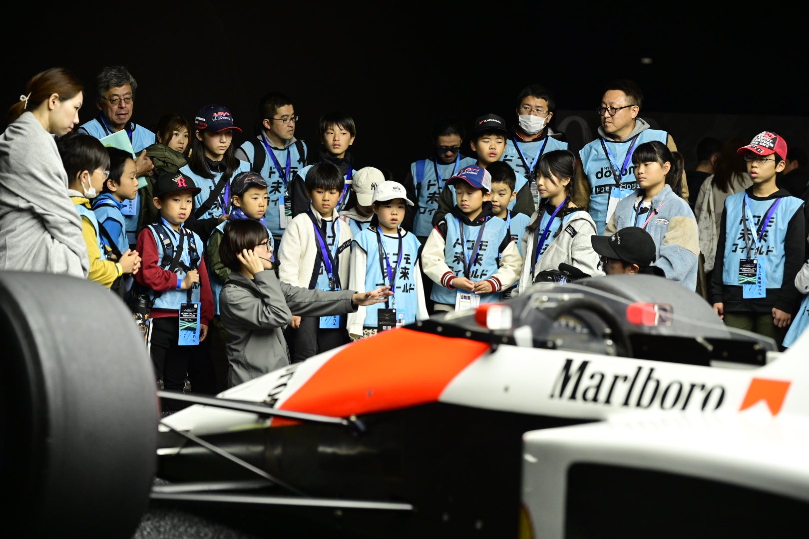 その後「Honda RACING Gallery」へ移動し、過去のレースを彩った名だたるレーシングカーを見学しました。60年前から挑戦し続けているホンダF1カーの数々は、ここでしか見ることの出来ない貴重な展示。デザインやテクノロジーの進化に子どもたちも興味津々です。