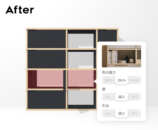 ~扉・引出・オープン収納の配置を自由に選択~オンラインオーダー家具システム「ituki」をアップデート【株式会社パモウナ】