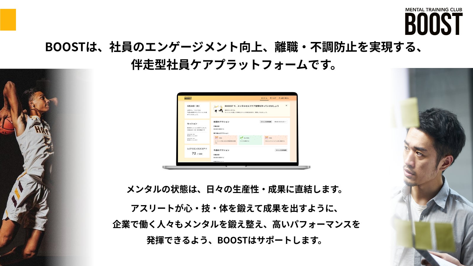 本セミナーでは、そのための具体的な方法とそれがどう組織を強くするのか、またBoost Health株式会社が提供する「メンタルトレーニングクラブBOOST」の活用事例についてお話しいたします。