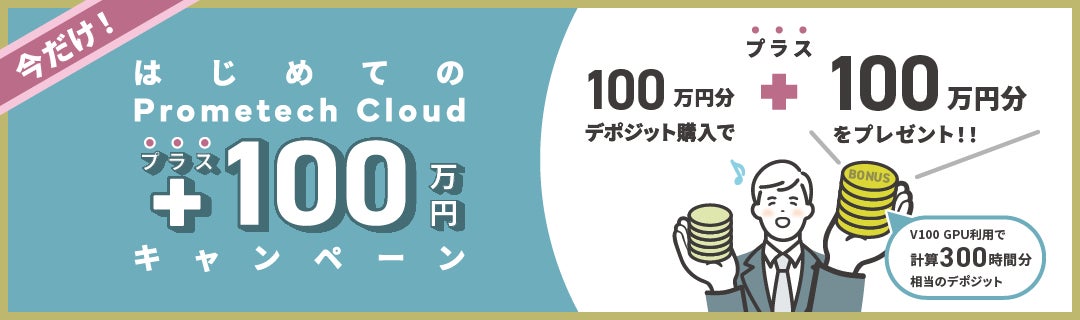 下記期間内に「Prometech Cloud」の100万円分のデポジットをお申込みいただいたお客様 |