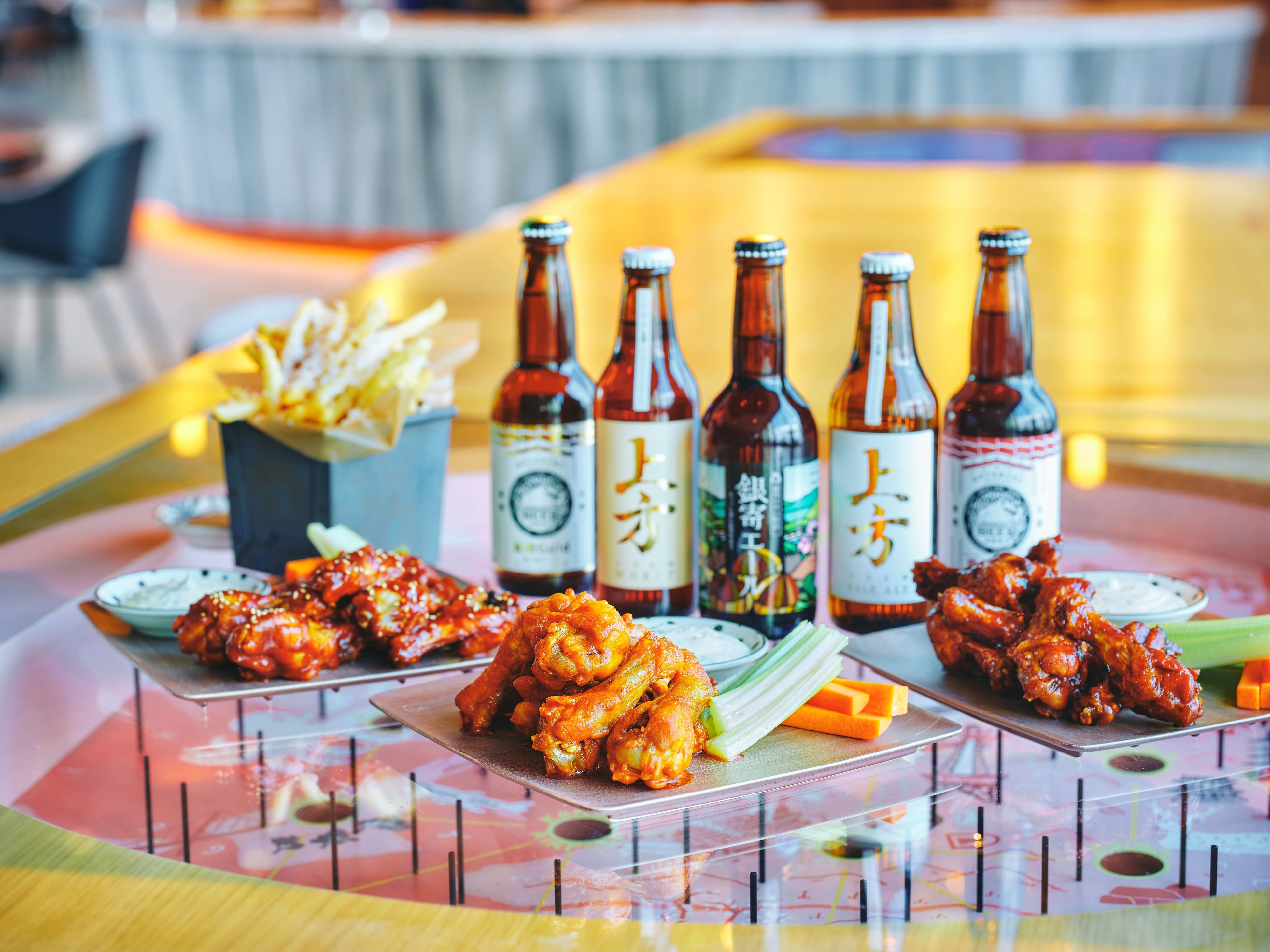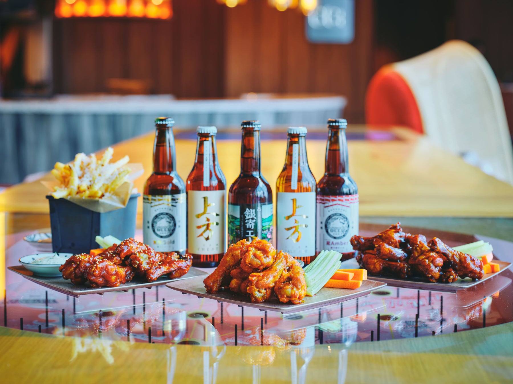 再開発された梅田の街や淀川を一望できる11階のバー&ラウンジ「!JaJa!Bar(ジャジャバー)」。開放感あふれる店内には、大阪の下町で親しまれてきたスマートボール台やスポーツ観戦も楽しめるテレビスクリーンを設置、インテリアには昔の天王寺駅をイメージしたライトやお好み焼きのごちゃまぜ感を表現したテーブルなどを採用。関西を中心に集めたクラフトビールやワイン、オリジナルカクテルとともに、モダンなアレンジを加えた大阪のローカルフードや、大阪北新地発祥のひとくち餃子「点天」を使用したメニューを提供しています。ノスタルジックなゲームを楽しみながら、オリジナルドリンクと共に大阪を満喫できるバー&ラウンジです。見知らぬ人同士が友人になり、毎晩が特別なイベントのように感じられるソーシャルな雰囲気の中で、一風変わった大阪のローカルフードをお楽しみください。