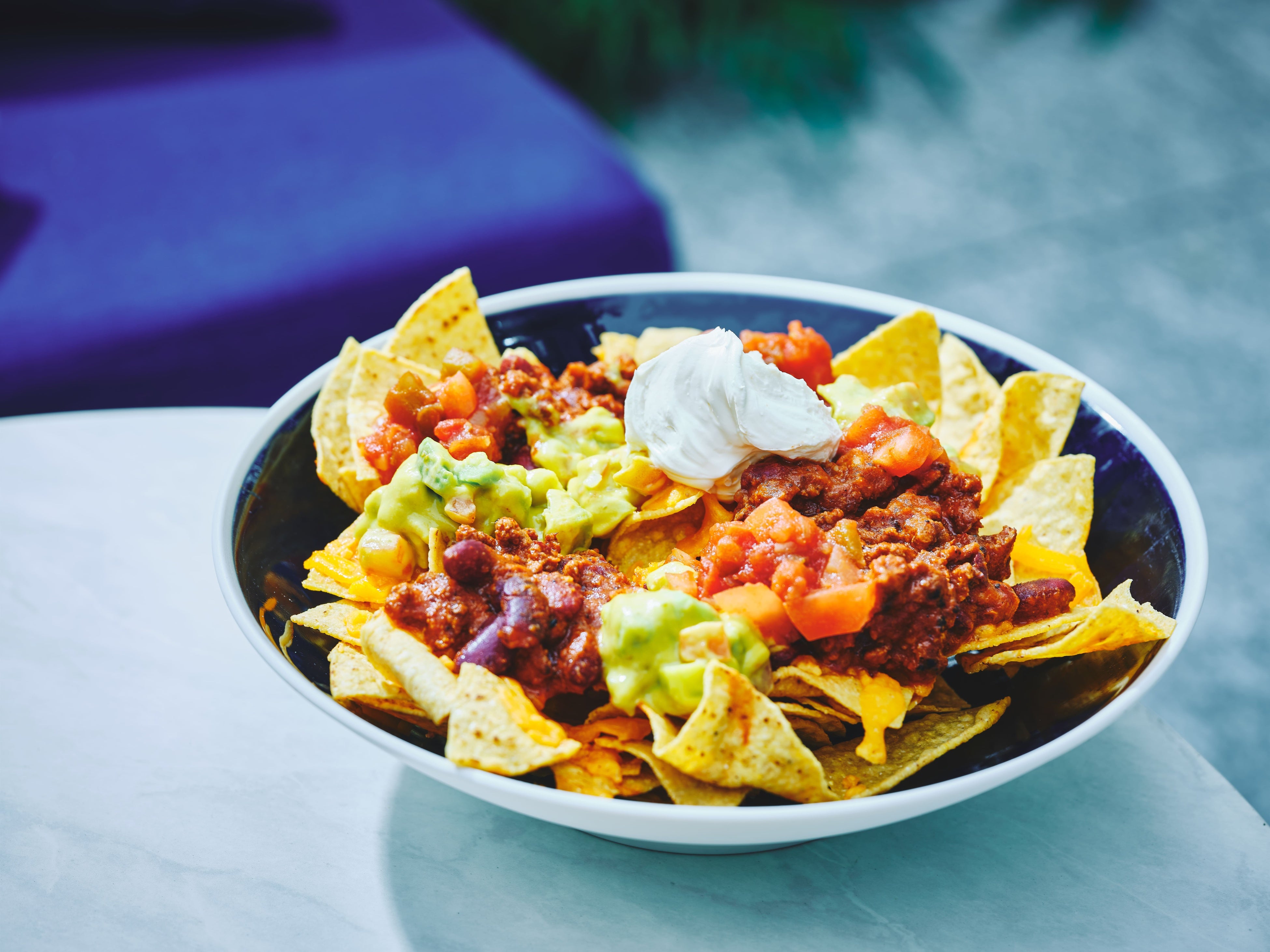 ナチョス、ビーフチリ、チーズ、ワカモレ、サルサ、サワークリーム(2,500円)