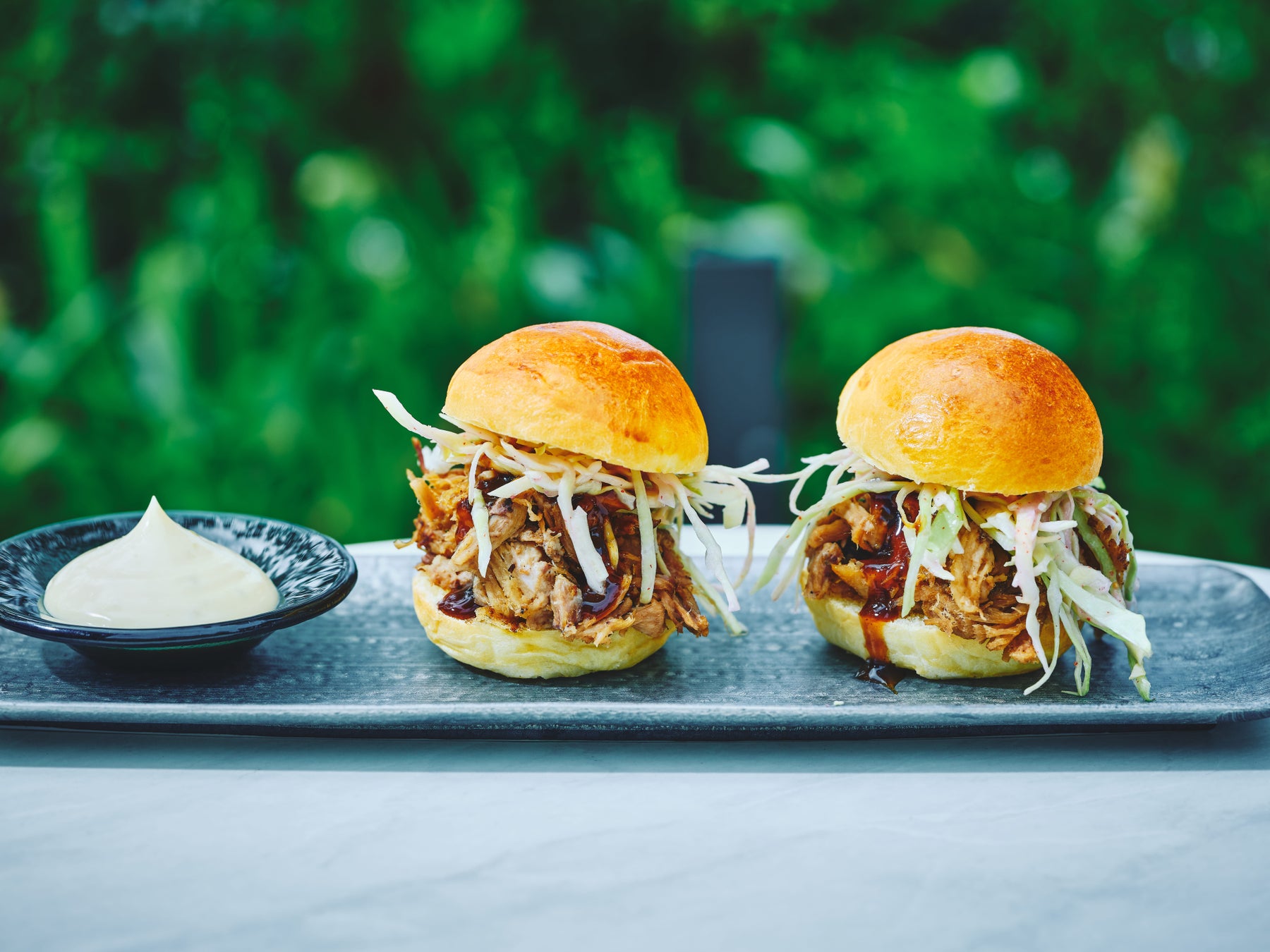 スローローストポークバーガー、大阪へルメスソース、ピンクペッパーコーン(1,800円)
