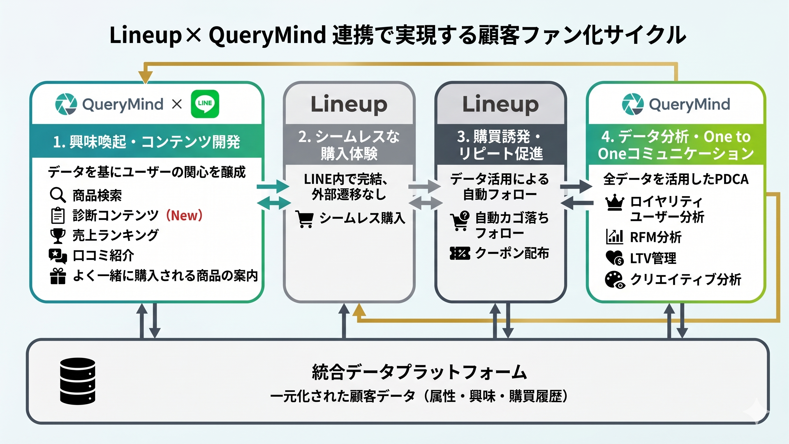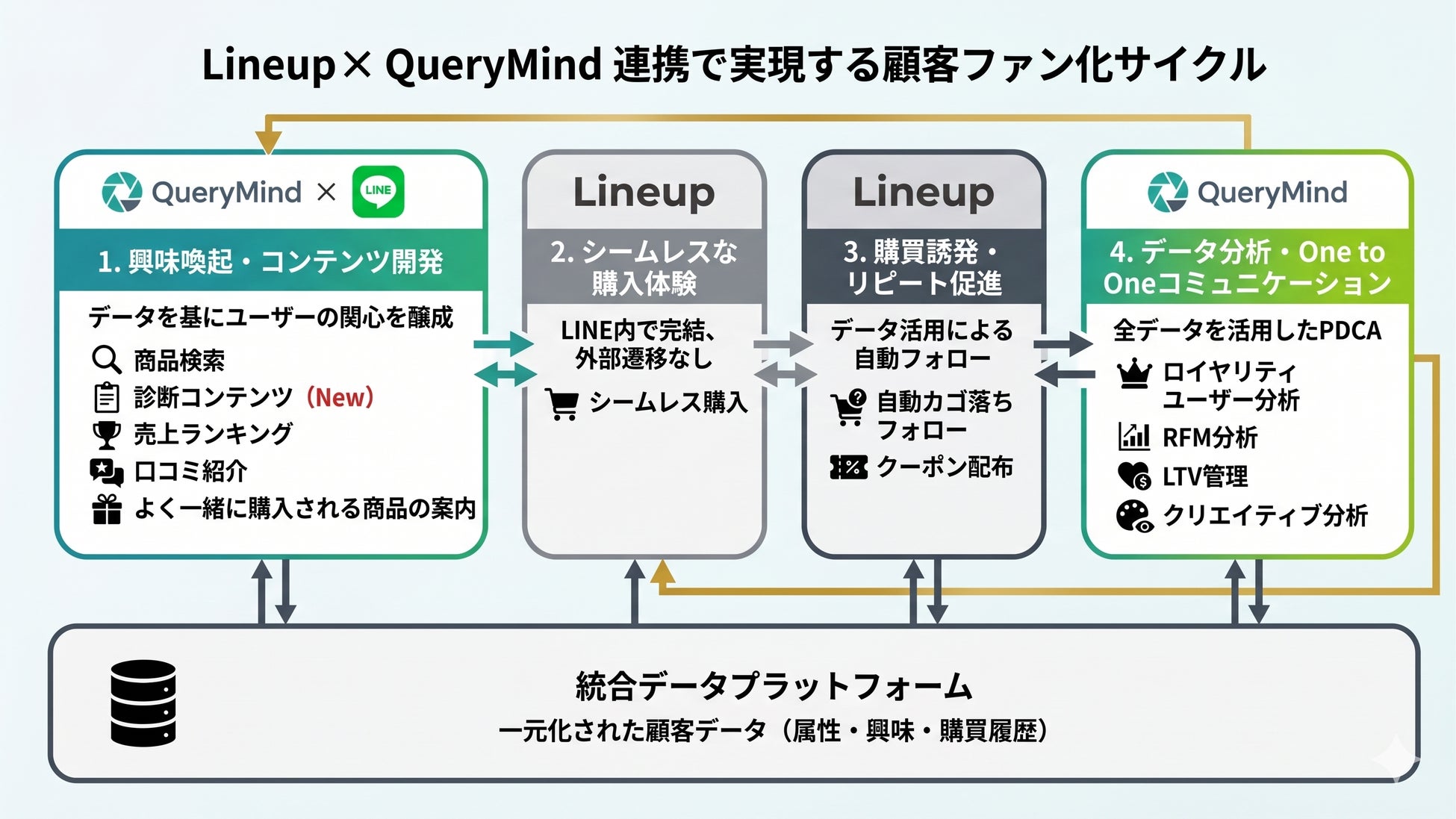 こうした背景を踏まえ、LINE上の購買体験と顧客ファン化を一体的に支援するため、LineupとQueryMindは連携を開始しました。