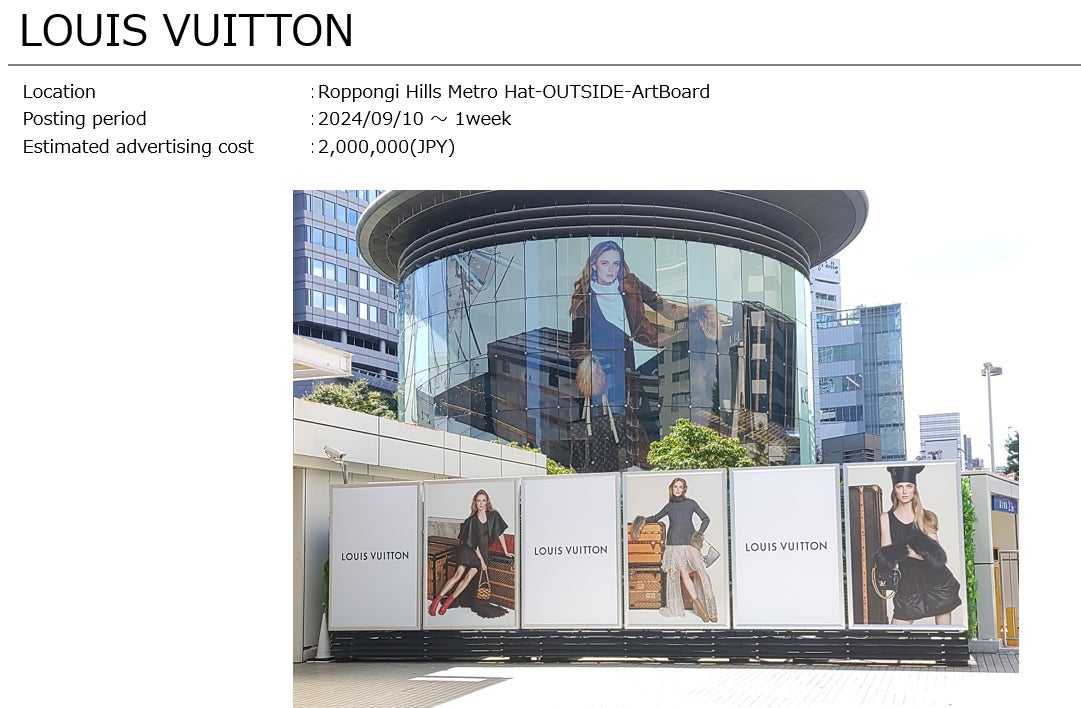 六本木ヒルズのメトロハットは、立地、規模の大きさも相まって非常にインパクトのある広告が出稿される機会が多く、ラグジュアリーブランドのイベント告知、海外自動車メーカー、携帯電話の新製品紹介などの場として活用されている。