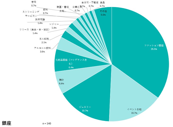 当該エリアにラグジュアリーブランドが多く出店していることも大きな要因と思えるが、流行感度の高い層を狙っての認知向上、購買へ繋がると各ブランドが認識して出稿していることがうかがえる。