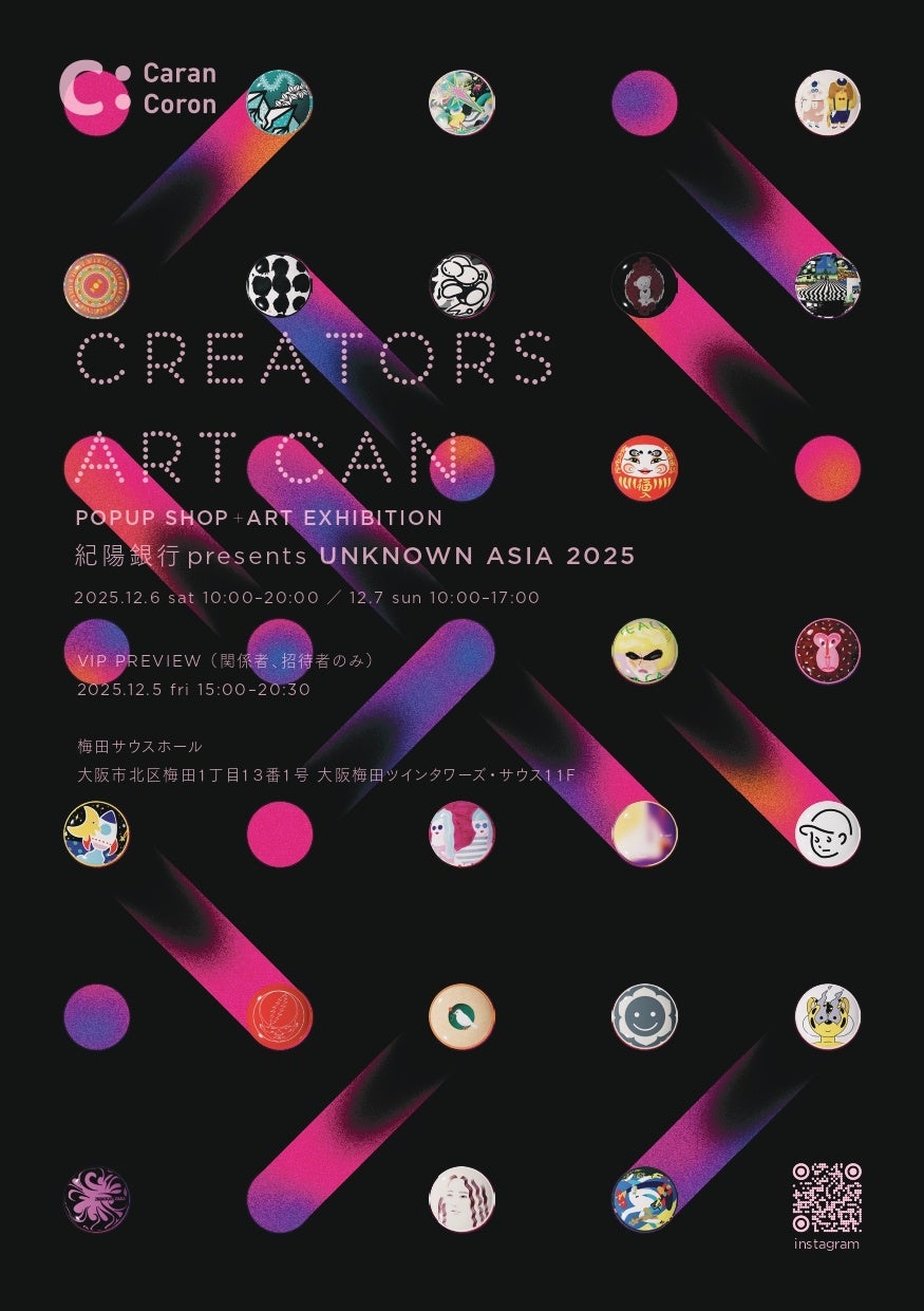 ⽣野⾦属株式会社(所在地:⼤阪府、代表取締役:⼩⻄ 康晴)は、12月に開催される「紀陽銀行 presents UNKNOWN ASIA 2025」にPOP UP SHOPとして出展し、クリエイターコロン缶を販売いたします。