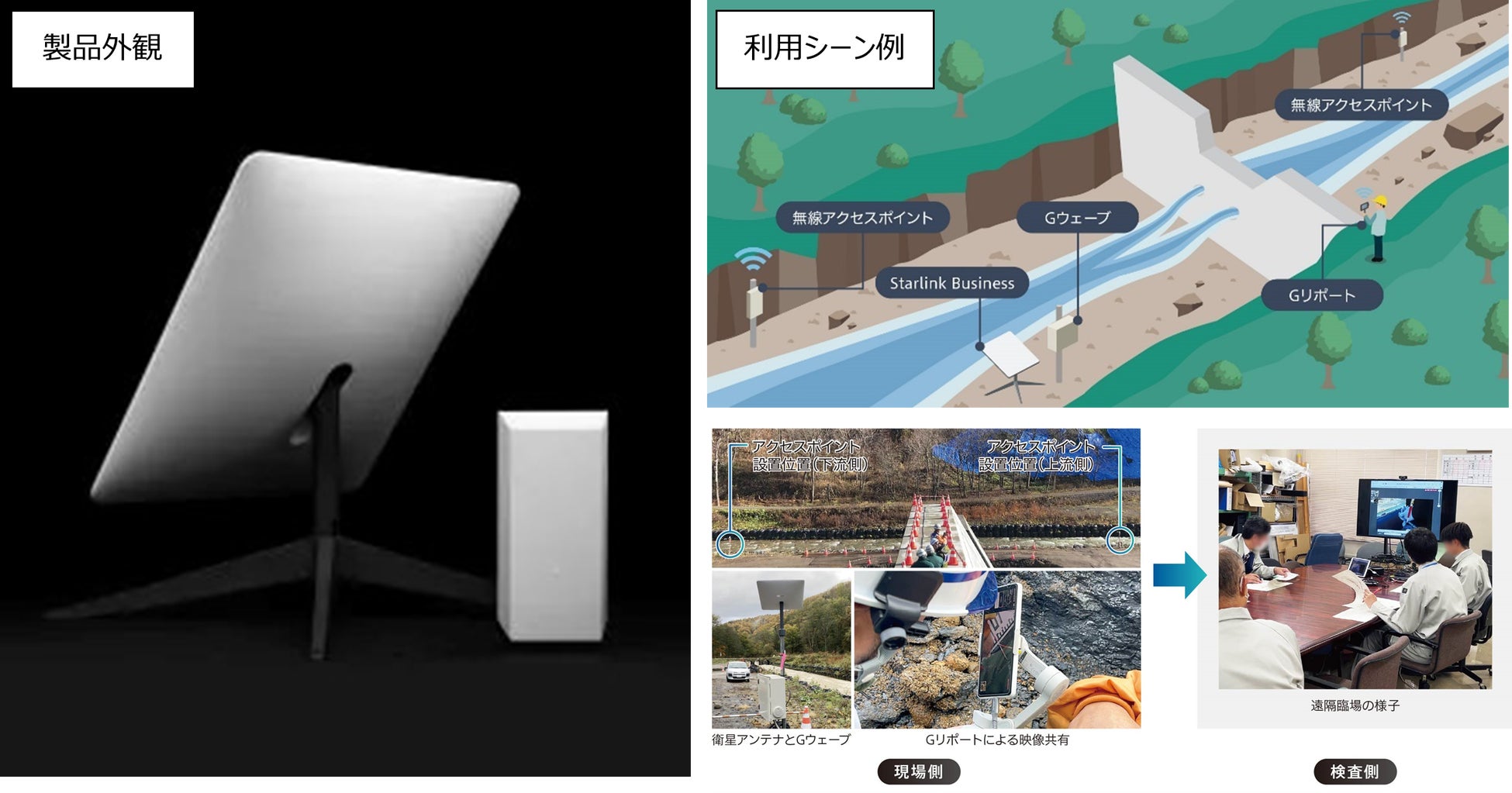 なお、GRIFFYでは「Starlink Business」と屋外無線伝送装置「Gウェーブ」をセットで提供することで、内蔵ルーターや無線アクセスポイントとの接続により、お客さまの要望に応じた無線LAN利用範囲の拡張を可能とし、「Starlink Business」由来の高速衛星通信を、さまざまな屋外シーンで利用可能とします。