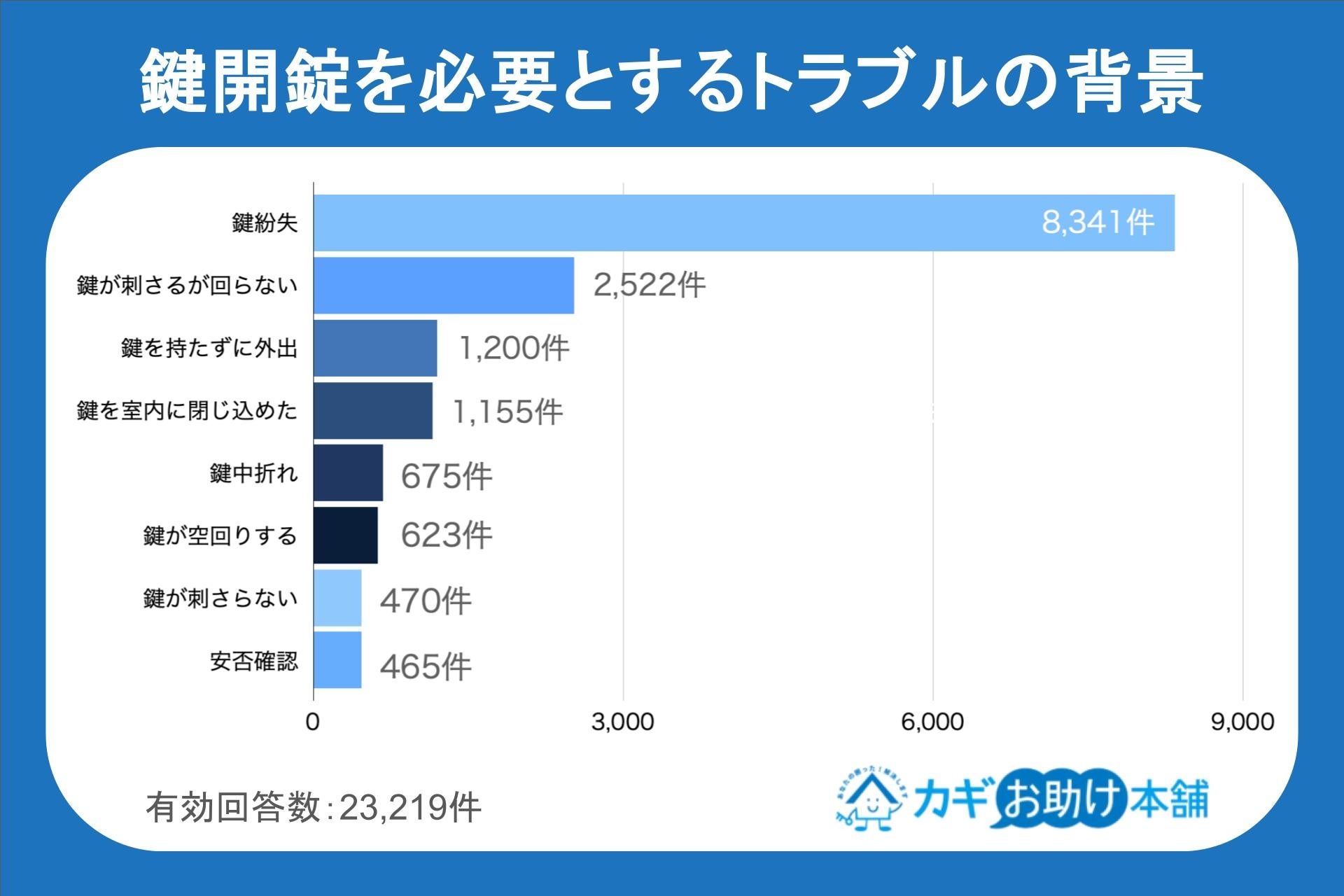 鍵開錠を必要とするトラブルの背景、1位は「鍵の紛失(8,341件)」