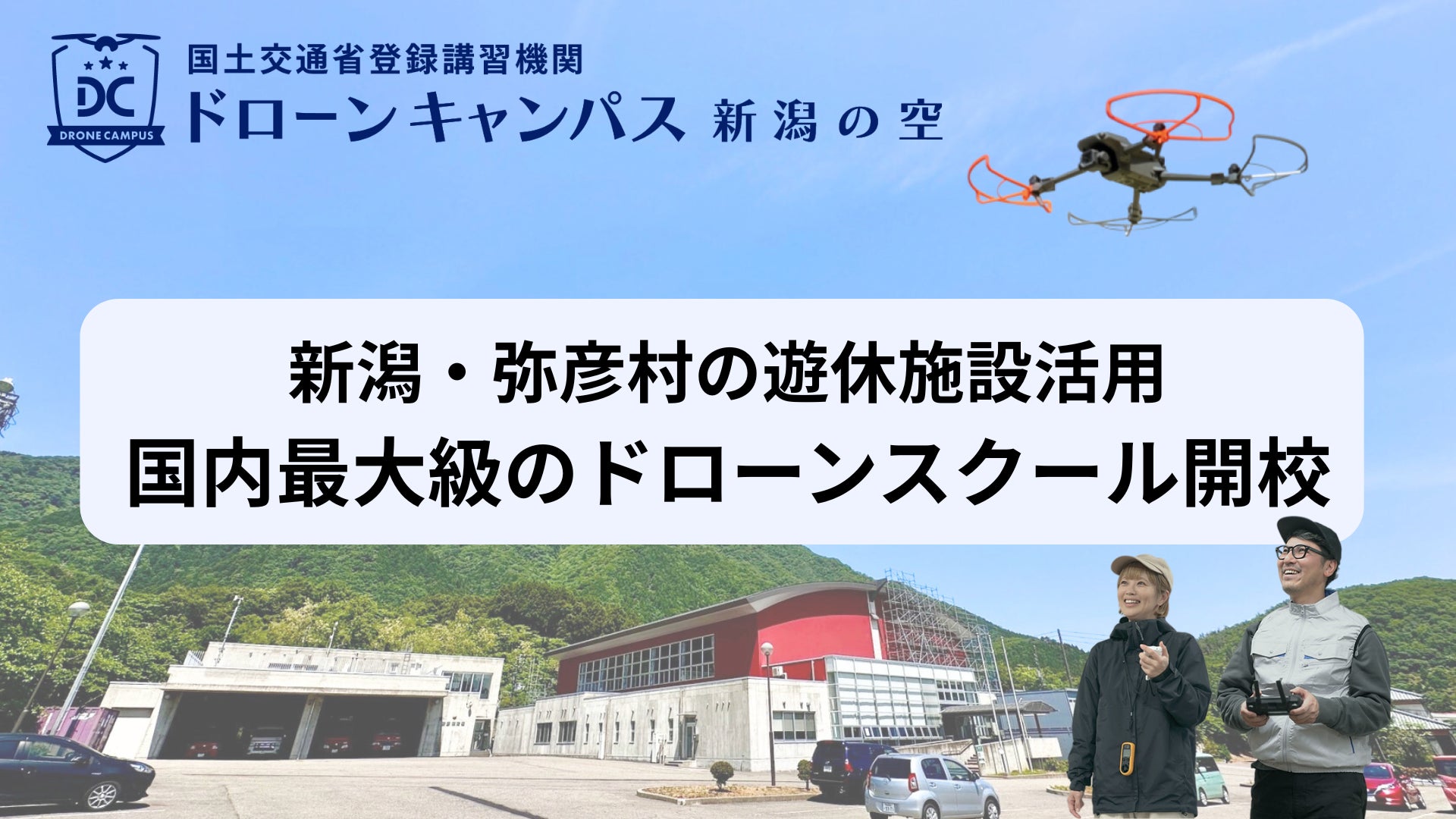全国各地の廃校等を活用し、ドローン操縦の国家資格スクールにおける国内最大級グループを運営している北陸の空株式会社(所在地:福井県鯖江市)は、2025年6月55日より新潟県にある公共施設「弥彦体育館(所在地:新潟県弥彦村)」を拠点に「ドローンキャンパス【新潟の空】」を開校します。