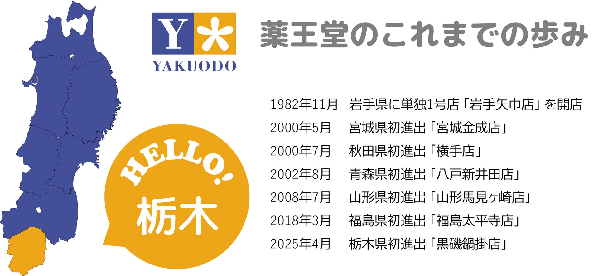 薬王堂は1978年の創業以来、東北地方を中心に地域に密着したドラッグストアチェーンとして成長してまいりました。今回の「黒磯鍋掛店」のオープンは、当社にとって405店舗目となり、関東地方への新たな挑戦となります。