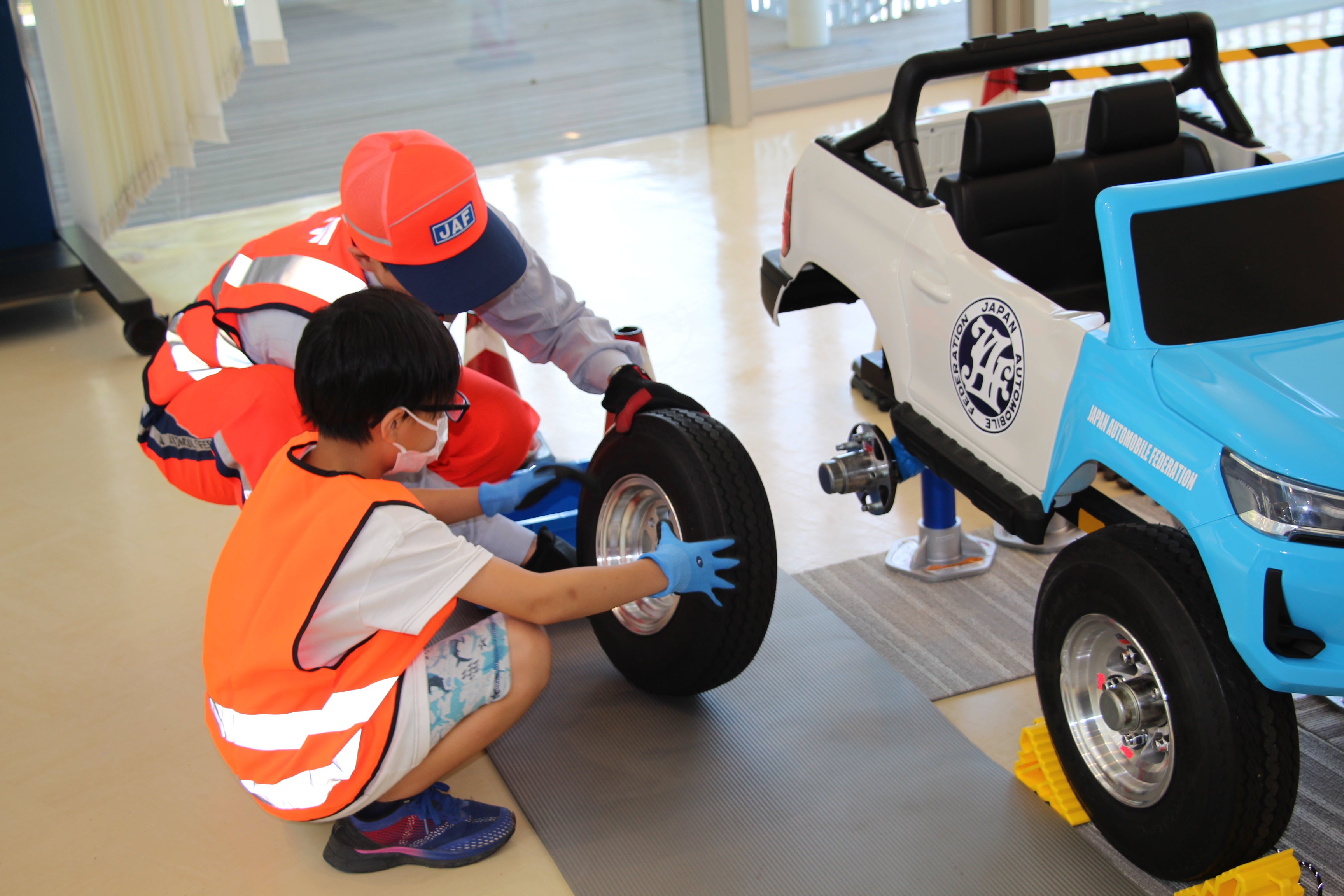 【JAFロードサービスカー展示、子ども安全免許証発行、・JAFレッカー車ペーパークラフトづくり、子どもロードサービス検定(当日予約制)など】5月24日(土)13:00~17:00(元町2丁目)