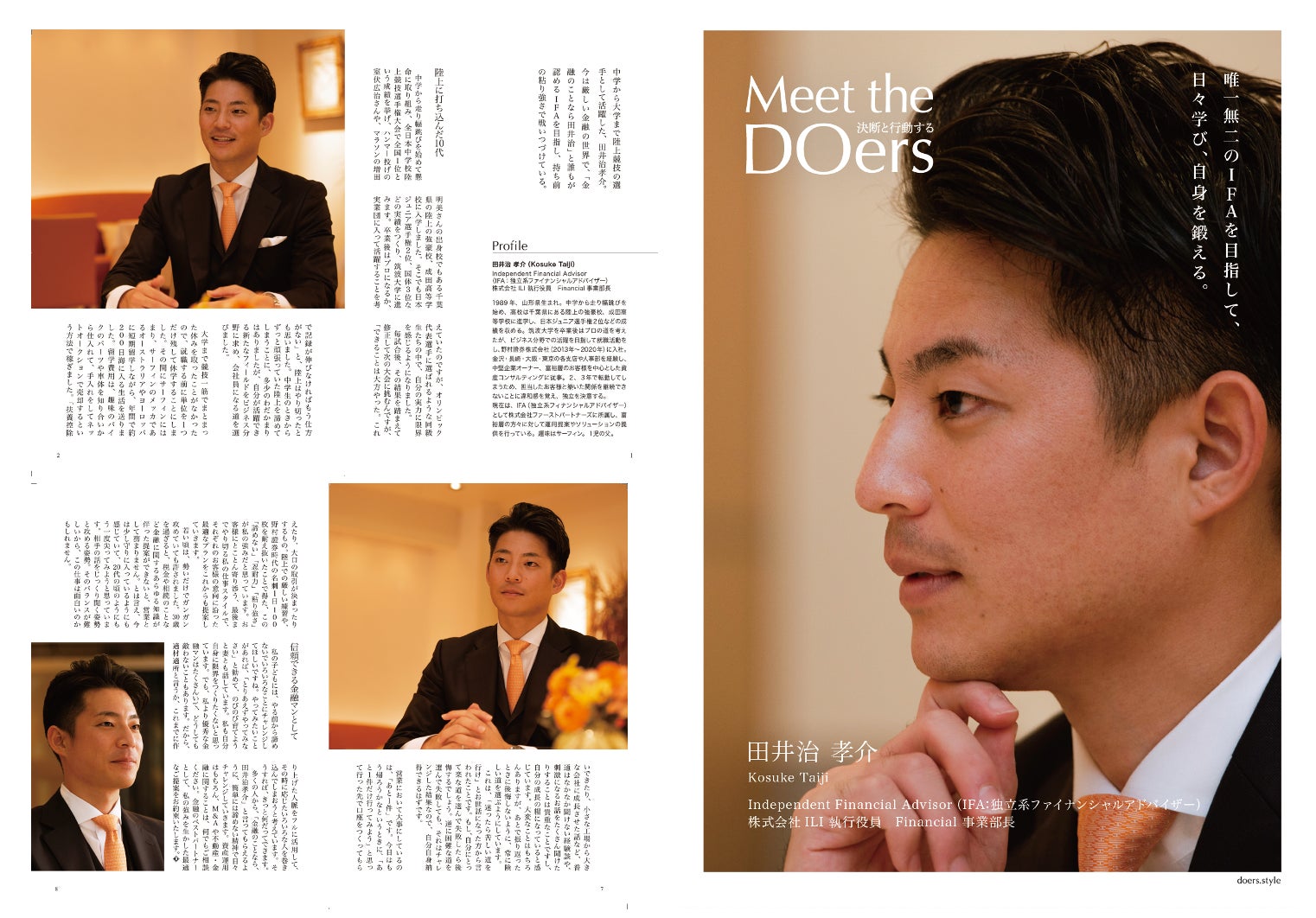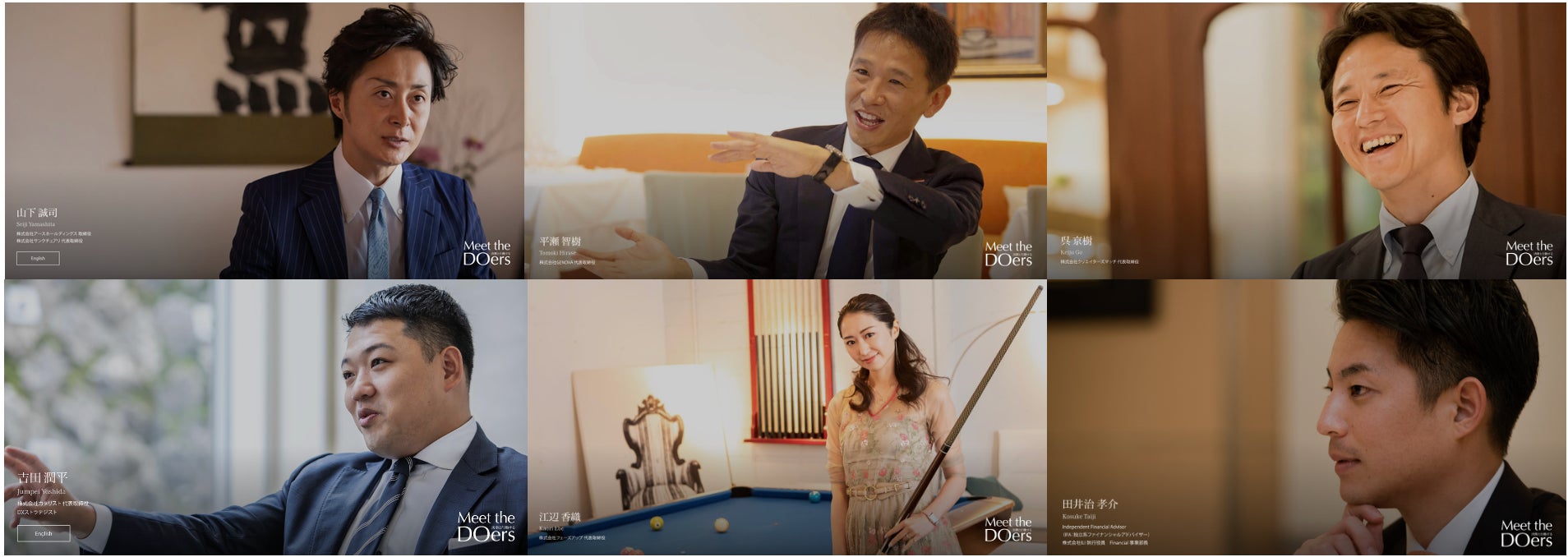 2018年に開設した『決断と行動する DOers』のプラットフォームでは、今まさに現在進行形で活動している30代後半から50歳までの人にフォーカスし、彼らがどのように考え、決断し、そして行動しているかを発信しています。「できる 」と言う人 、「できない 」と言う人 、大抵どちらの決断も正しい。ただ、どのような決断をしても、やらない人は、いつまでもやらない。やる人は、すぐに行動を起こすのです。