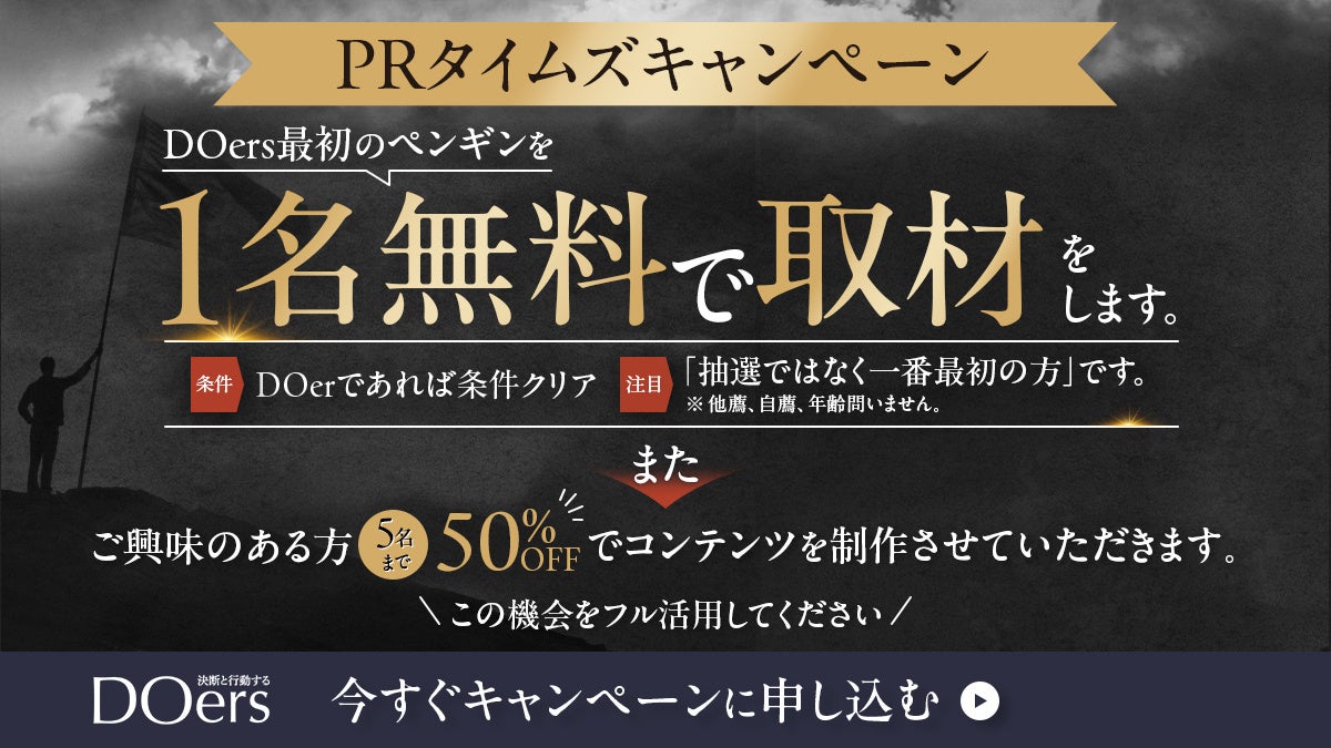 この記事を読んでお申し込みをされた最初のDOerを『決断と行動する DOers』に無料で掲載する