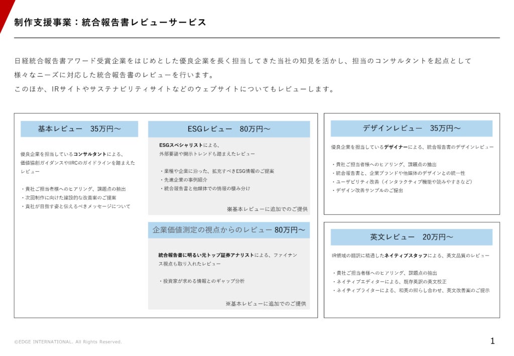株式会社エッジ・インターナショナル(以下、当社)は、統合報告書レビューサービスの提供を開始しました。