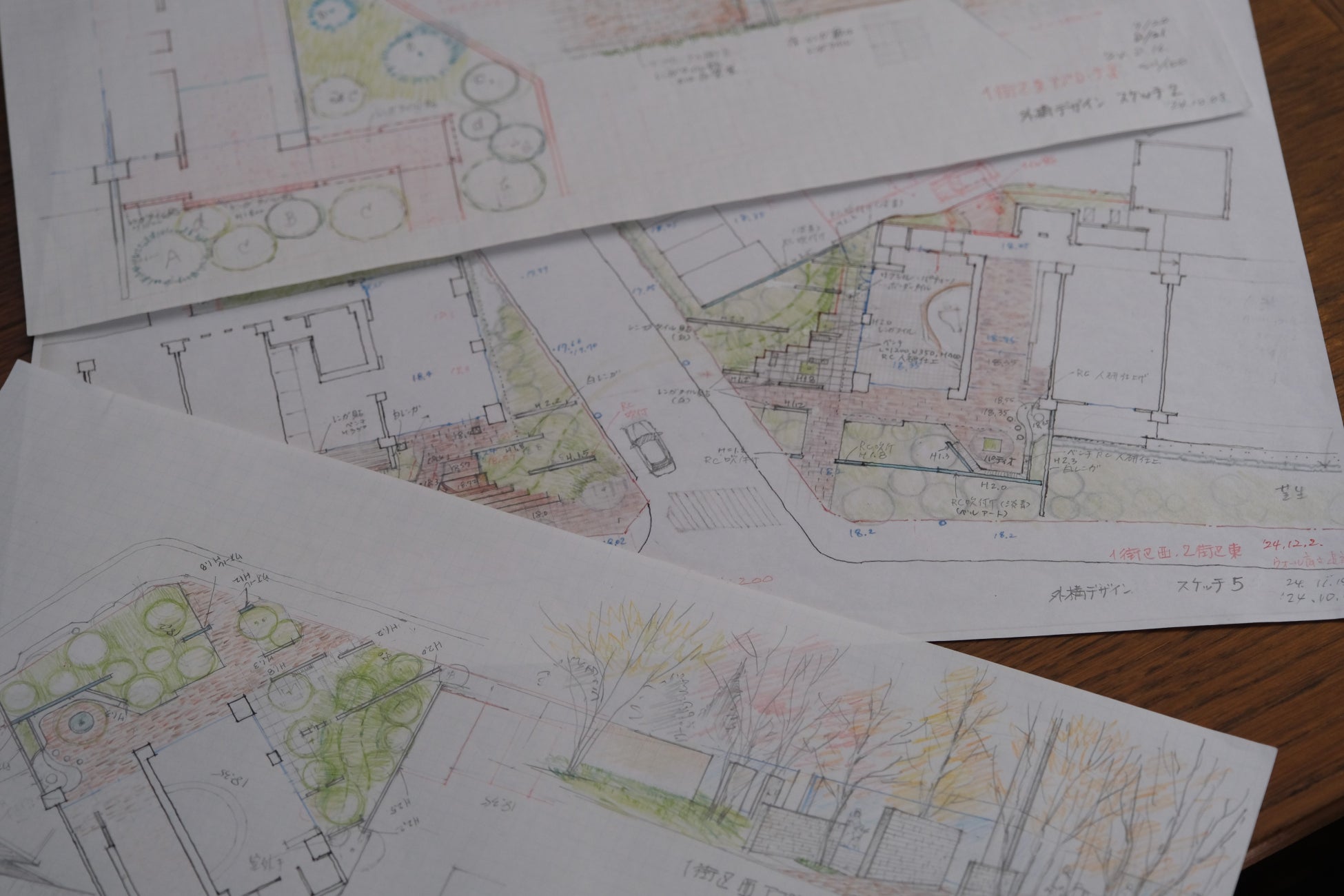外構計画では、オーガニックな煉瓦素材を多用し、ヒマラヤスギ、モミ、トウヒ等常緑針葉樹に加え、カエデやカナダモミジなどの欧州系落葉樹を配し北欧スタイルの緑化計画を予定しています。エントランスアプローチ手前とサブエントランス奥に、緑樹につつまれたパティオ(交流の場)を設定しています。外構のデザイン監修には、庄島設計室株式会社「庄島正興」氏を起用しています。