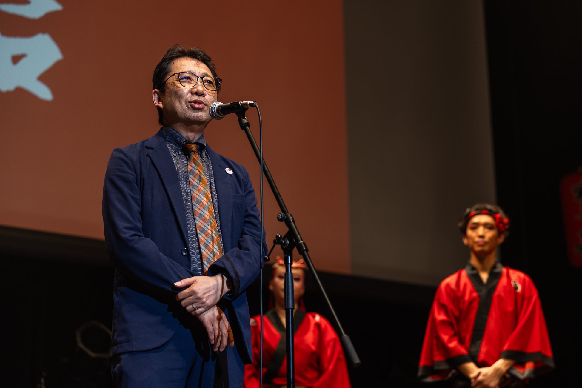 来賓の挨拶では、国際交流基金 国際対話部長の原秀樹氏、CyberAgent Legitディレクターであり日本盆踊り協会 芸術顧問のFISHBOY氏、そして東京外国語大学 副学長の中山俊秀氏の三名より、お祝いの言葉をいただきました。